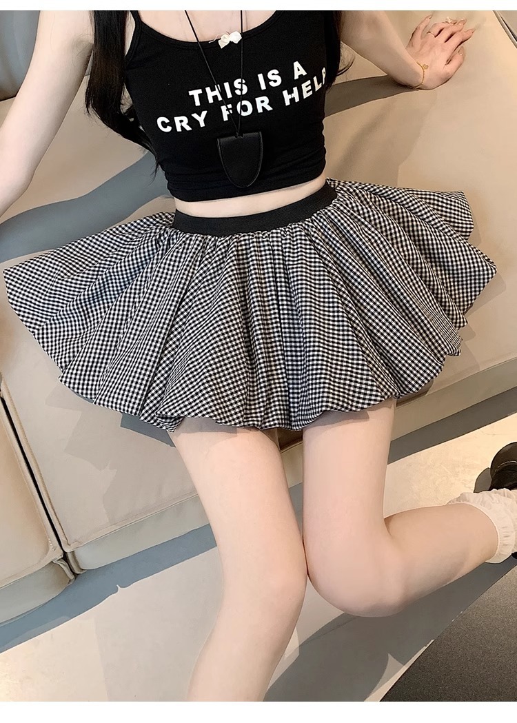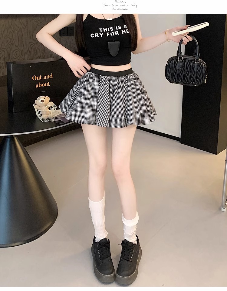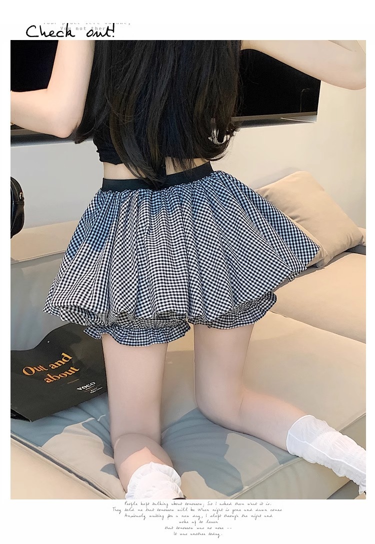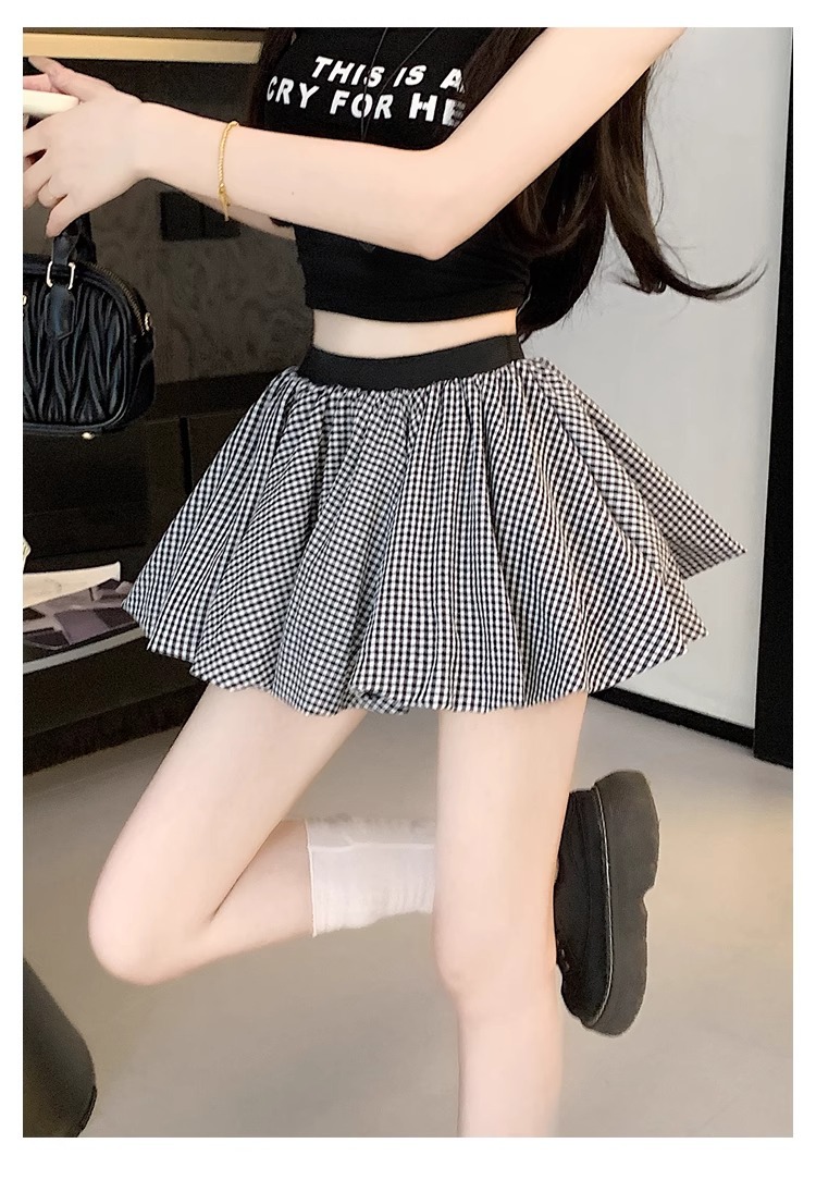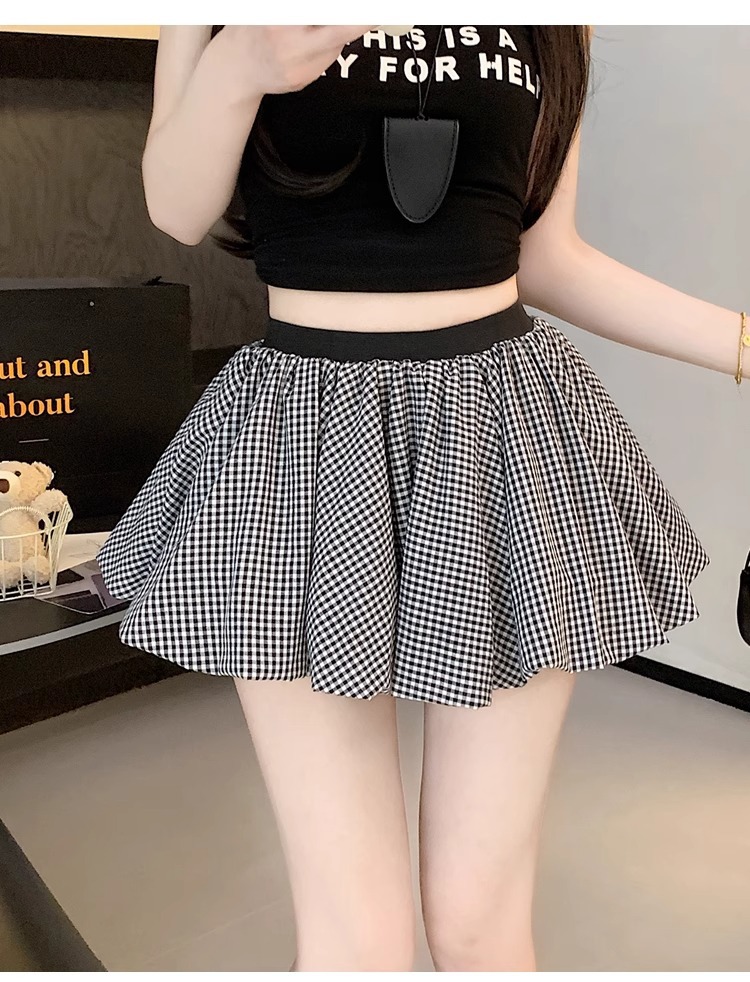 여름 여성용 발레 버드 푹신한 짧은 스커트, 얇은 하이웨이스트 A라인 슬림 캐주얼 노출 방지 체크 스커트스토어 가기