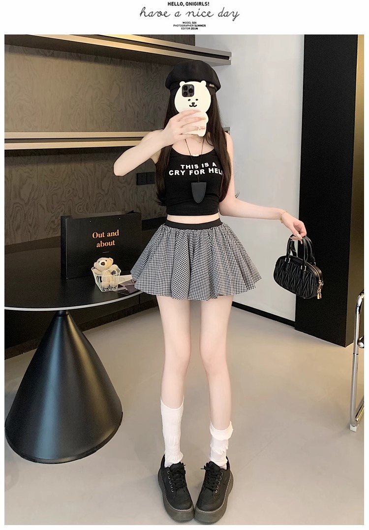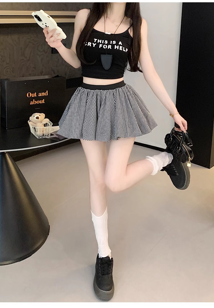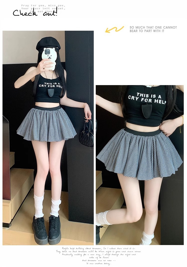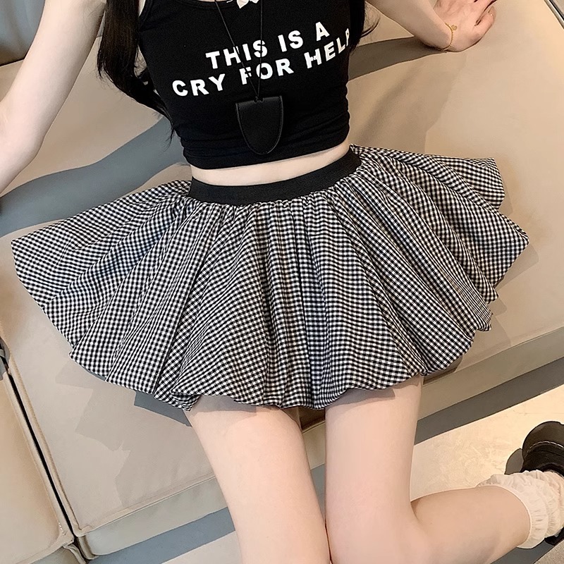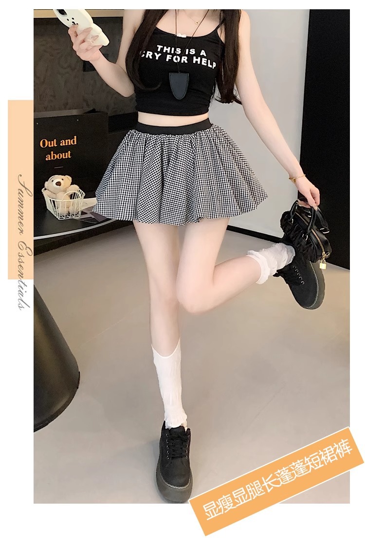 여름 여성용 발레 버드 푹신한 짧은 스커트, 얇은 하이웨이스트 A라인 슬림 캐주얼 노출 방지 체크 스커트스토어 가기