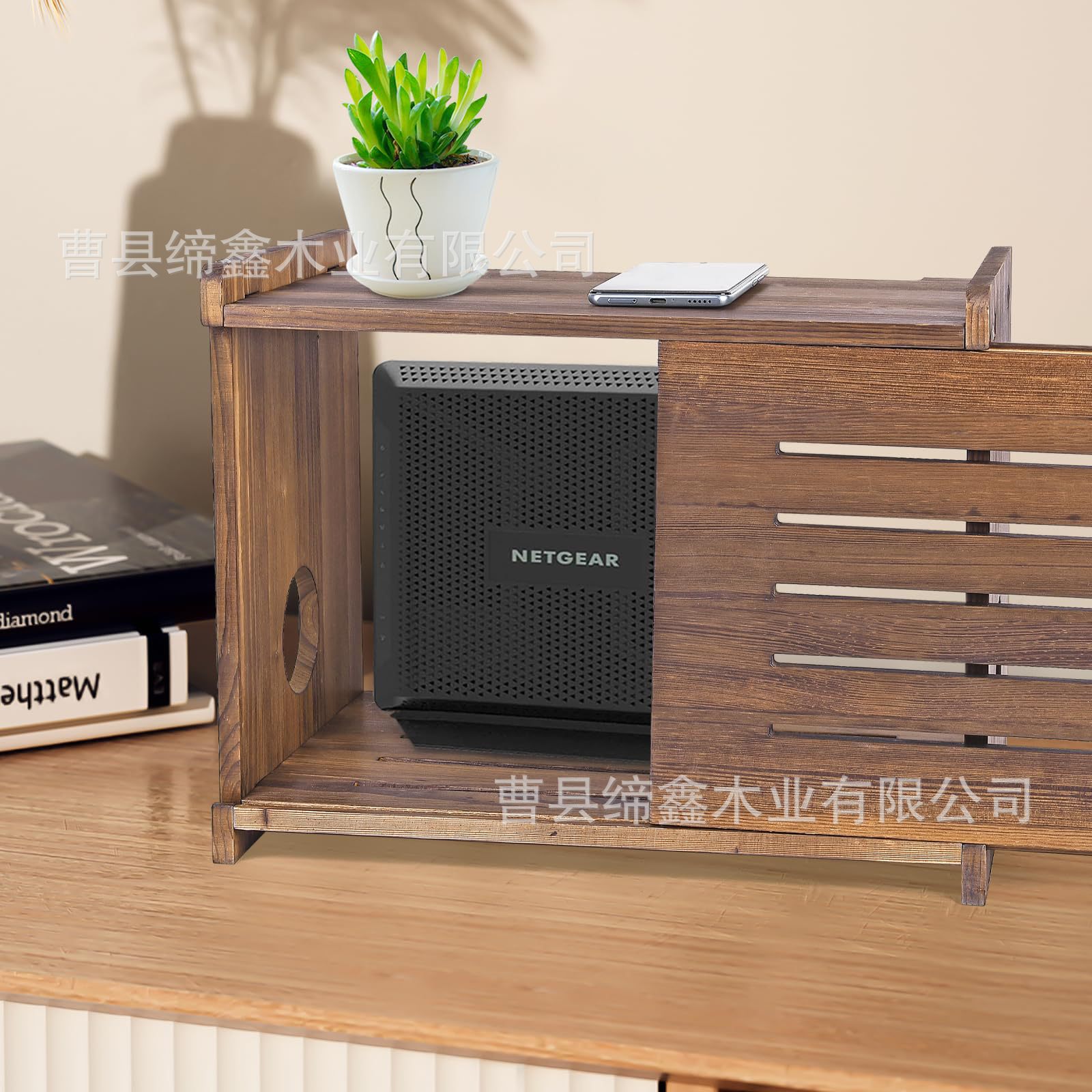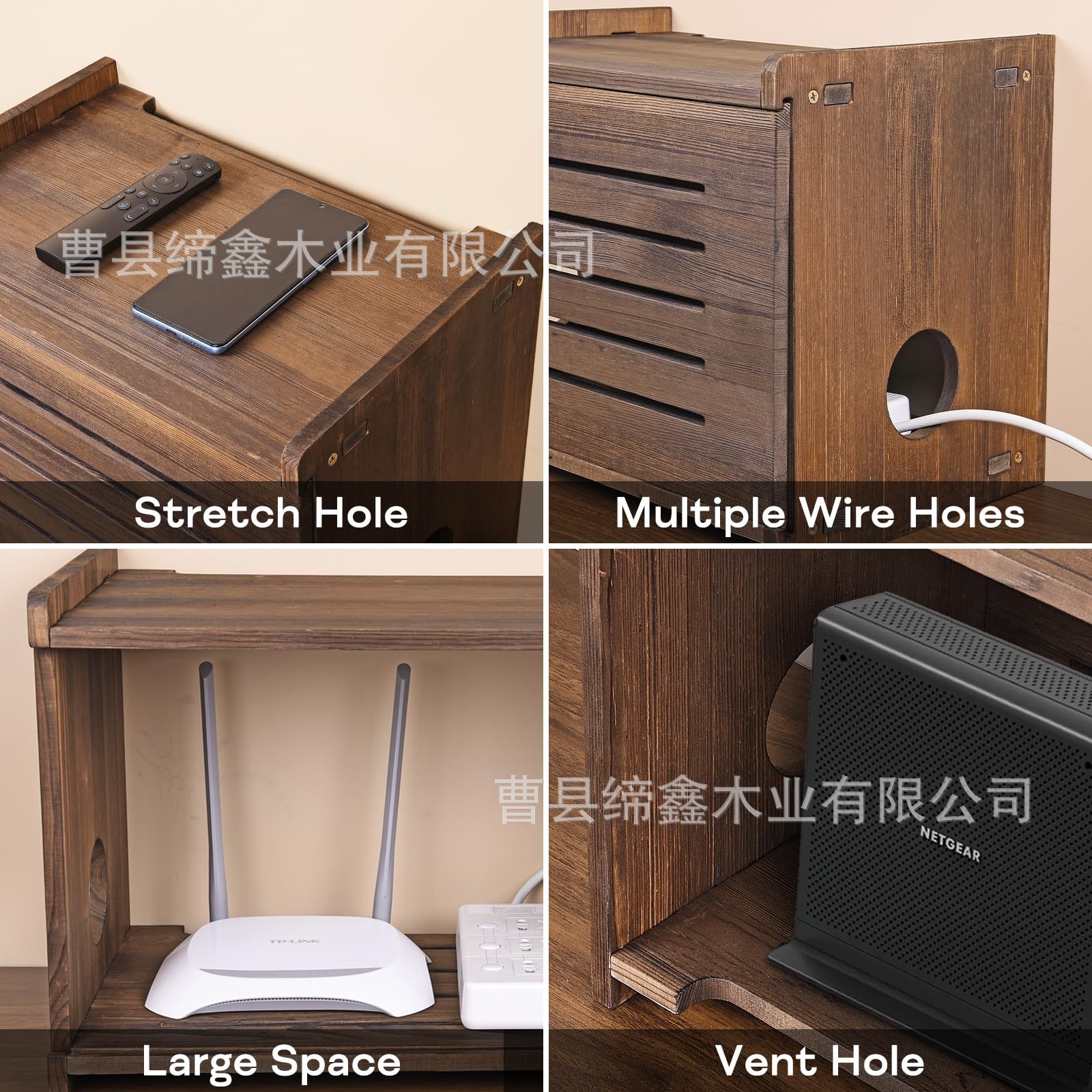 나무 정리 상자 라우터 홀더 플러그인 박스 컴퓨터 데스크탑 WiFi 홀더 차단 케이블 단단한 나무 케이블 관리 상자스토어 가기