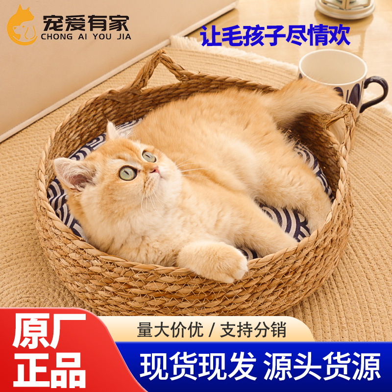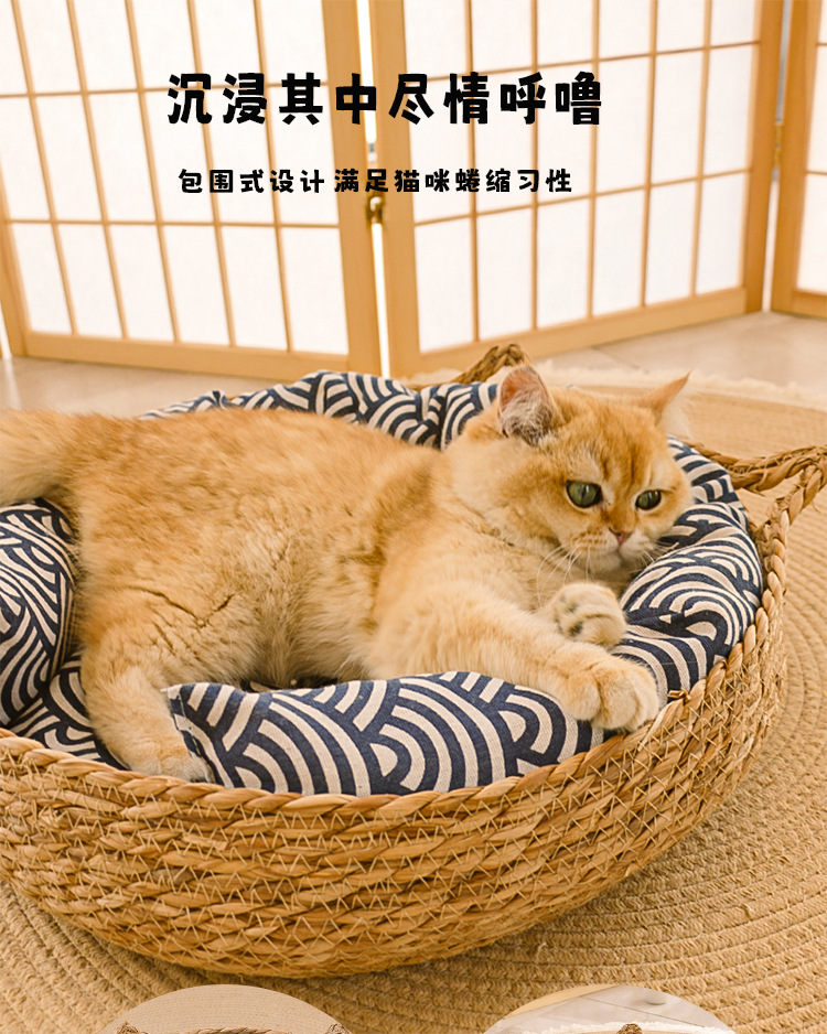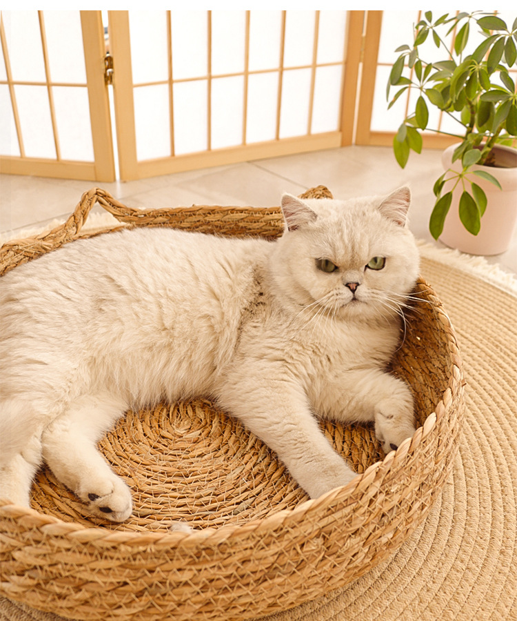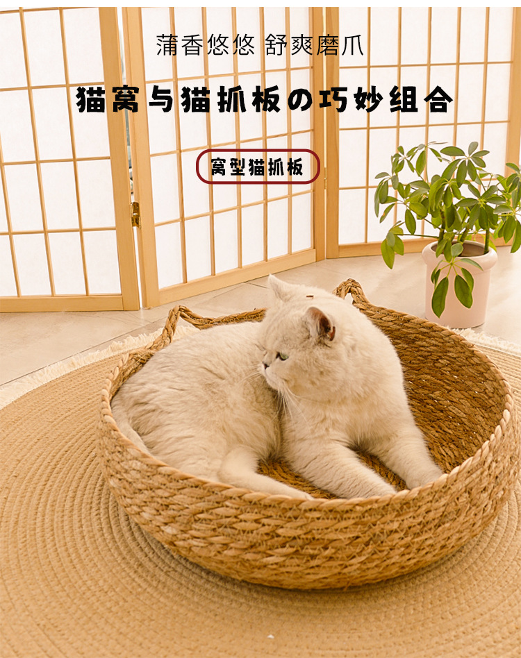 Cattail 등나무 고양이 사육장 개 사육장 사계절 보편적 인 따뜻한 내마모성 고양이 사육장 고양이 스크래치 보드는 부스러기를 떨어 뜨리지 않습니다 도매