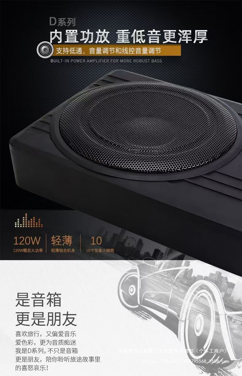 초박형 자동차 스피커 슈퍼 서브우퍼 수정 12v 시트 액티브 자동차 서브우퍼 오디오 10 Ruipai