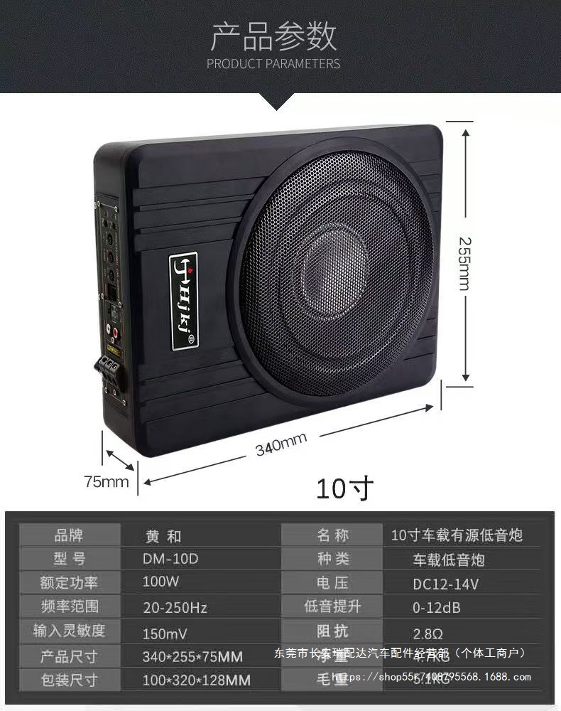 초박형 자동차 스피커 슈퍼 서브우퍼 수정 12v 시트 액티브 자동차 서브우퍼 오디오 10 Ruipai스토어 가기