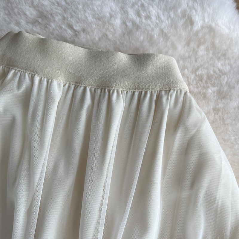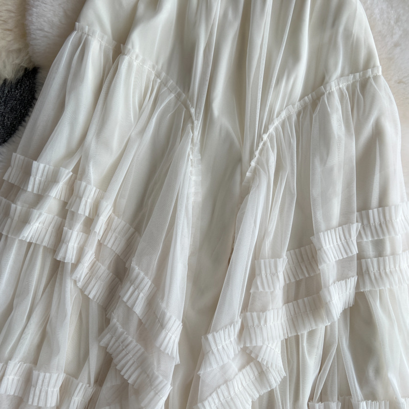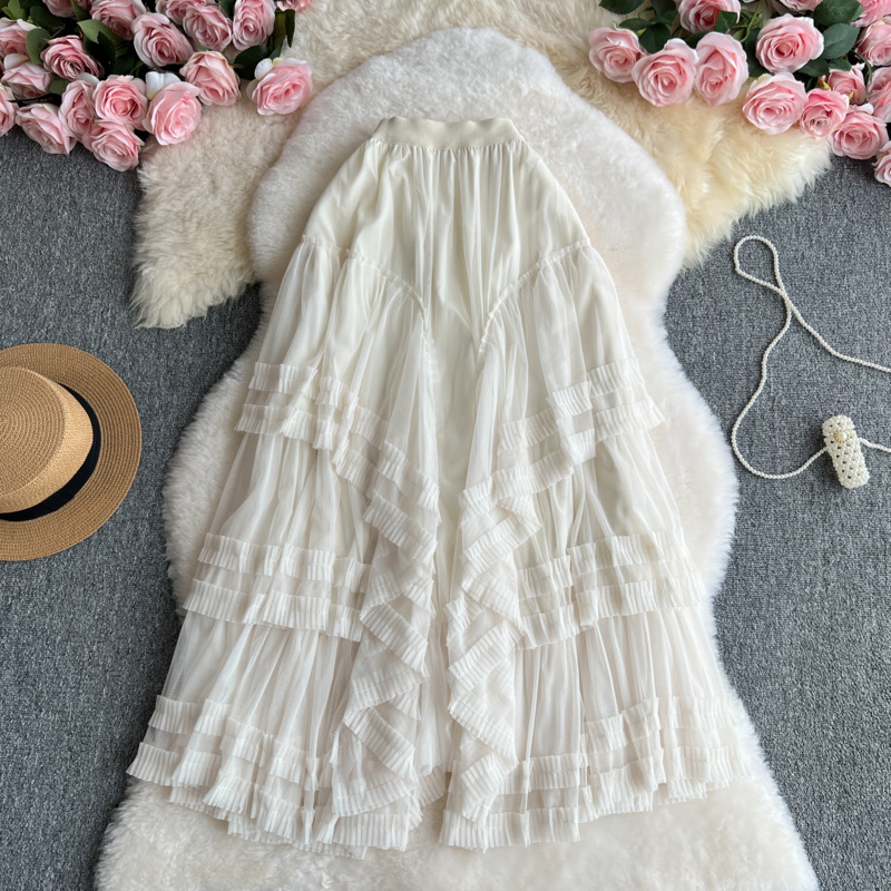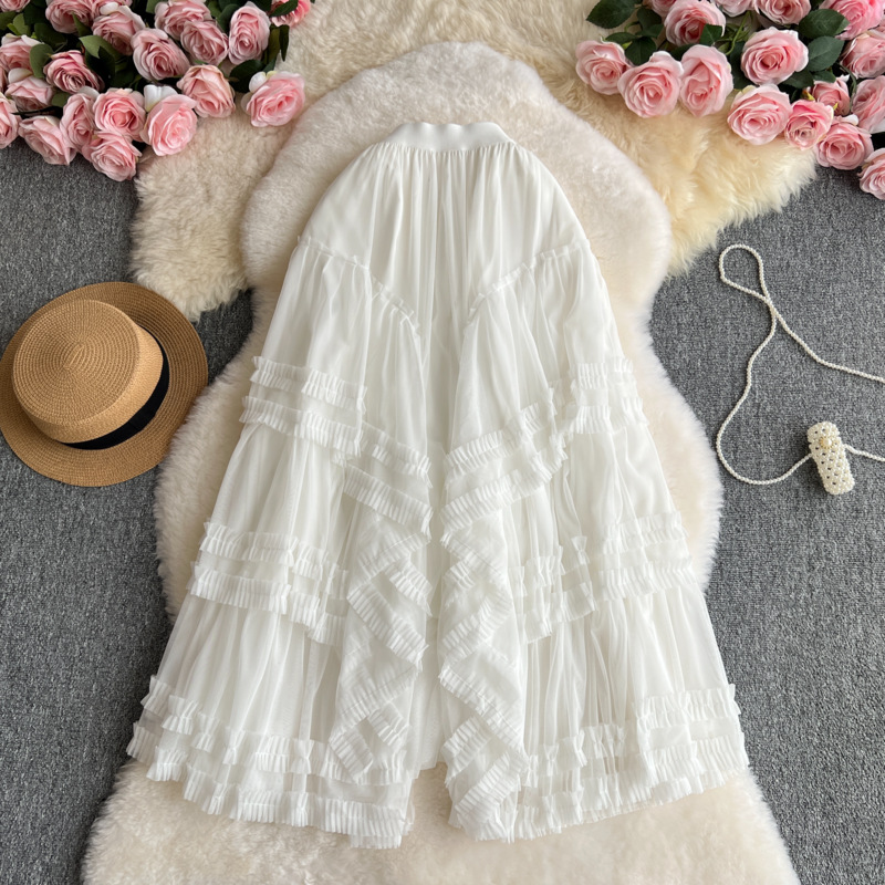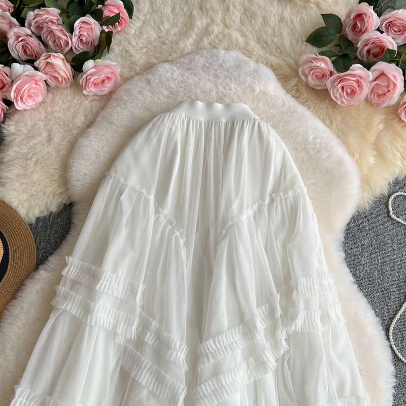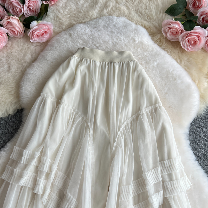 요정 불규칙한 치마 2025 여름 프랑스 디자인 스티칭 메쉬 푹신한 A 라인 대형 스윙 중간 길이 치마