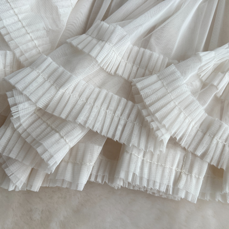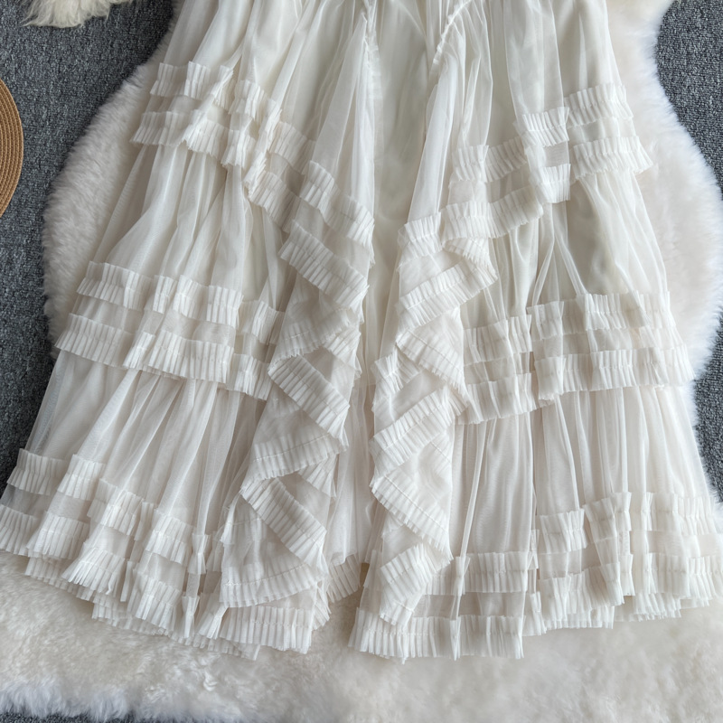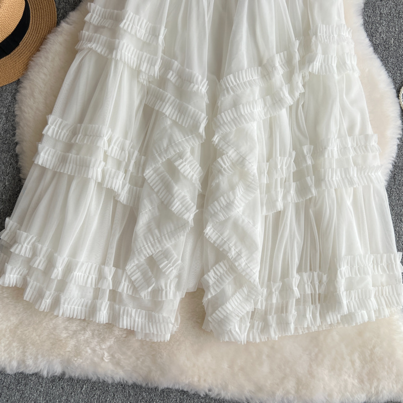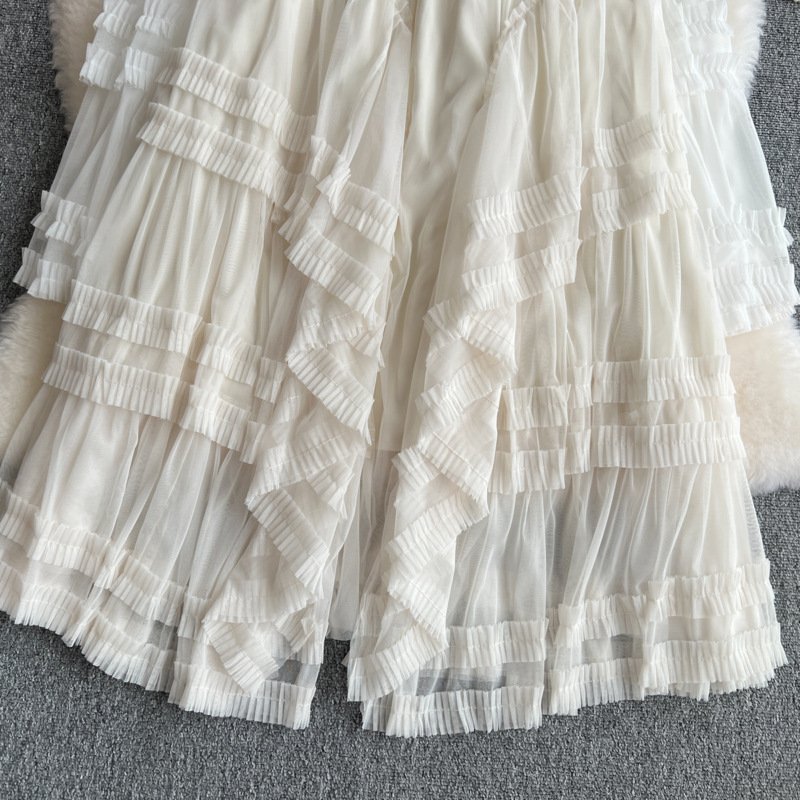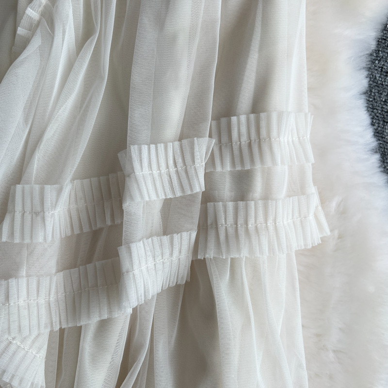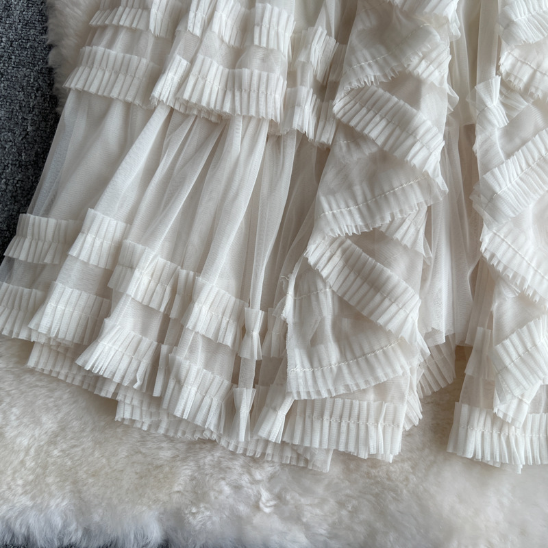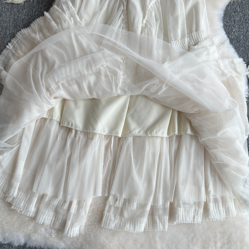 요정 불규칙한 치마 2025 여름 프랑스 디자인 스티칭 메쉬 푹신한 A 라인 대형 스윙 중간 길이 치마
