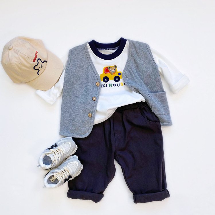 한국식 아동 조끼 니트 조끼 2024 새로운 봄, 가을 베이비 조끼 남성과 여성의 양복 조끼 유행 색상