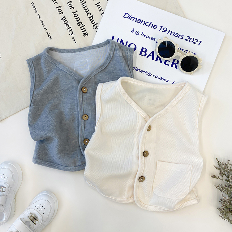 한국식 아동 조끼 니트 조끼 2024 새로운 봄, 가을 베이비 조끼 남성과 여성의 양복 조끼 유행 색상스토어 가기