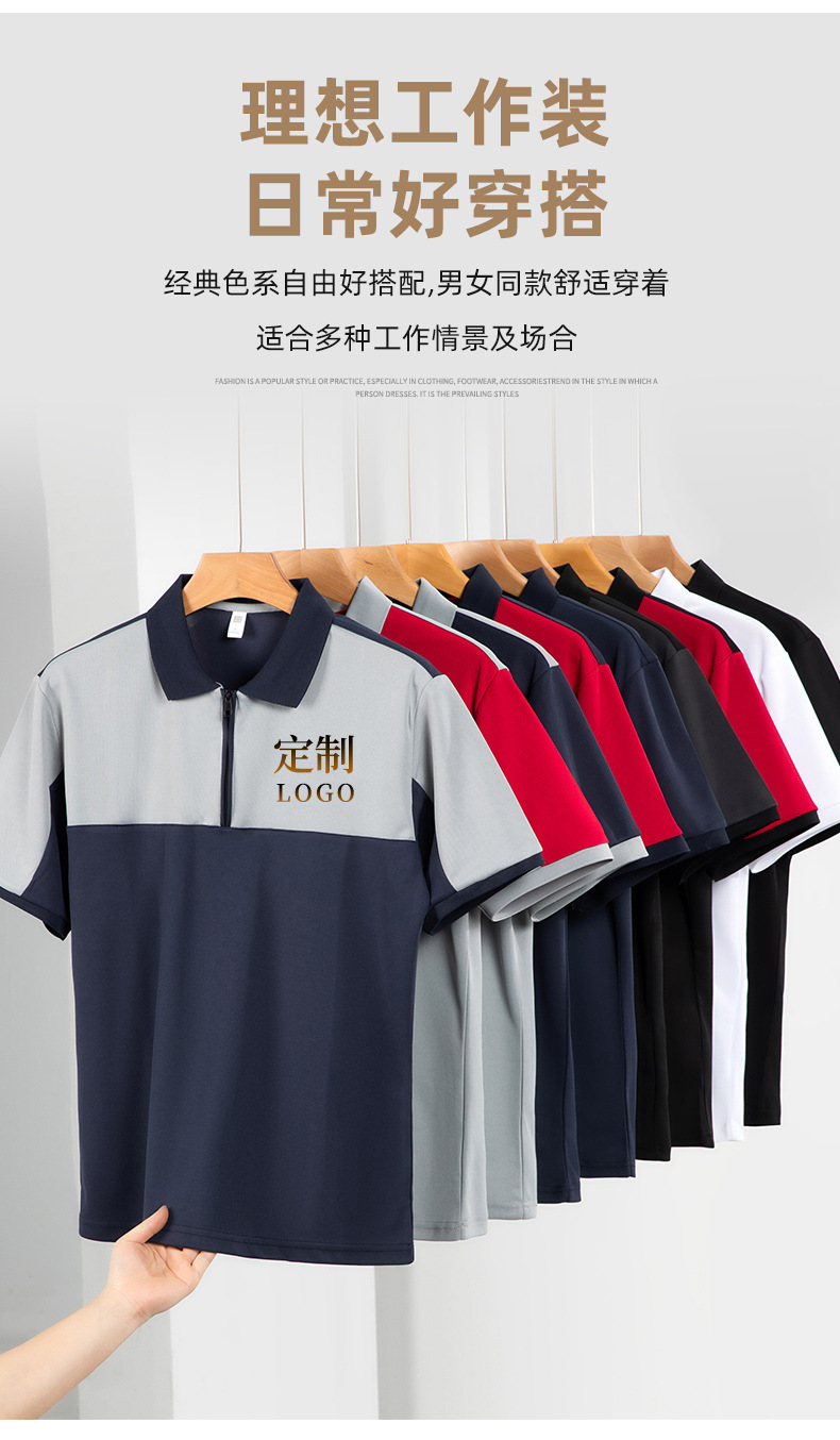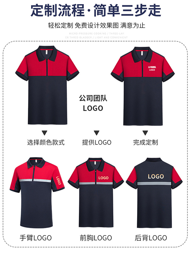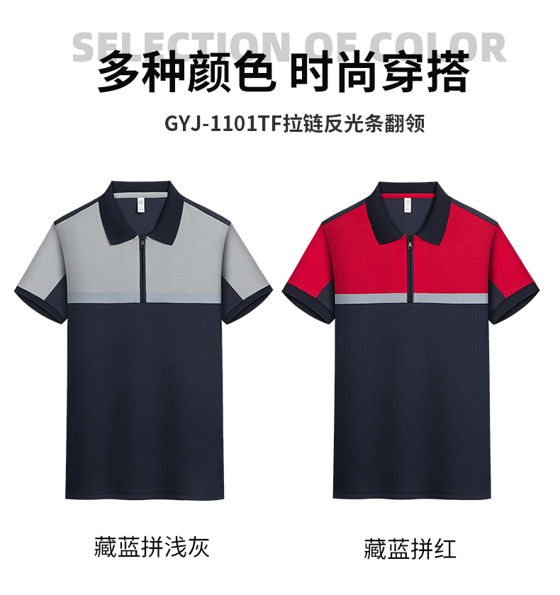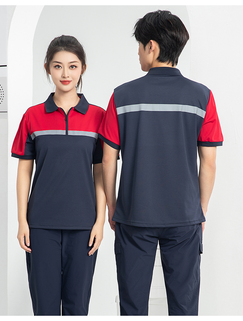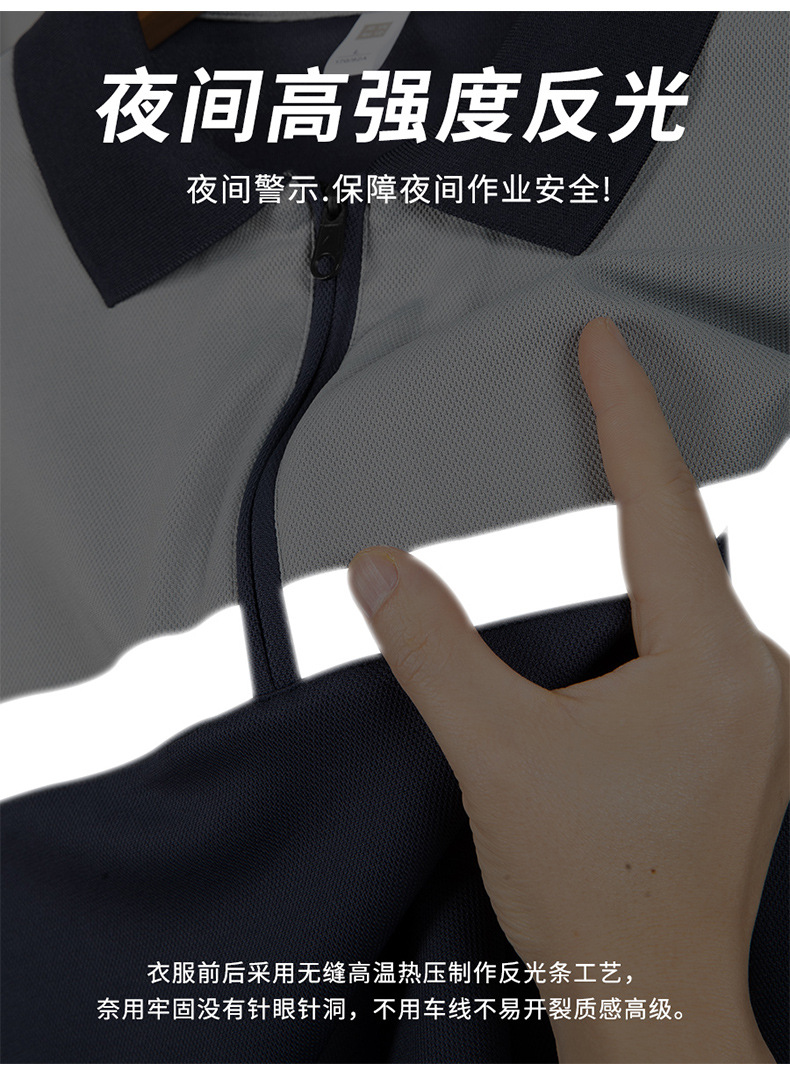 반 지퍼 반사 스트립 남성용 칼라 티셔츠 작업복 폴로 셔츠 반팔 퀵 드라이 폴로 셔츠 맞춤 인쇄 로고