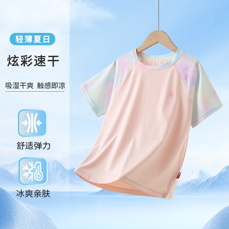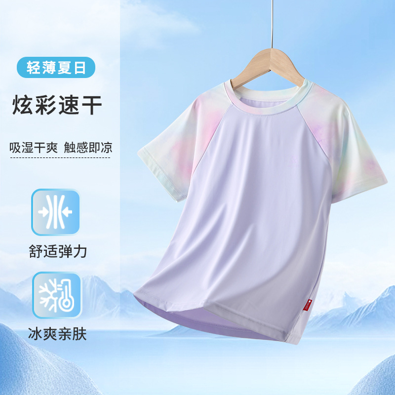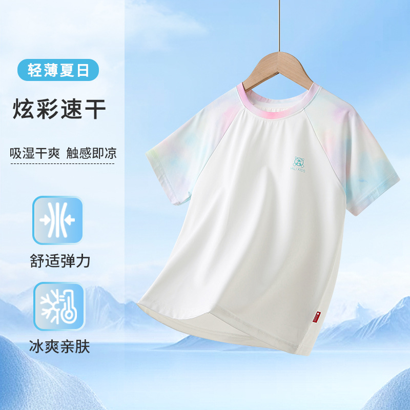 남아용 반팔 티셔츠 여름용 얇은 아동용 속건성 중대형 어린이용 여아용 아이스 실크 반팔 상의 매우 예쁜 아동복