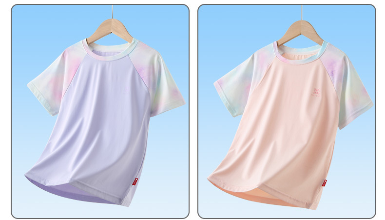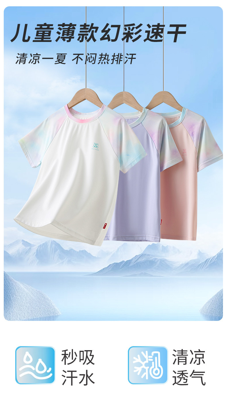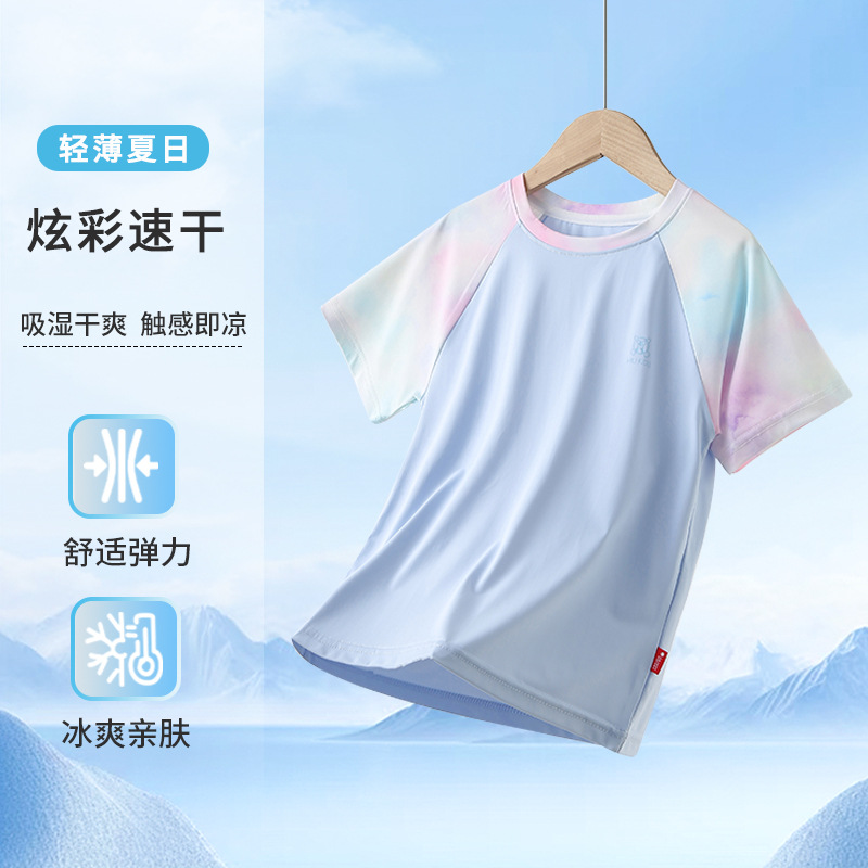 남아용 반팔 티셔츠 여름용 얇은 아동용 속건성 중대형 어린이용 여아용 아이스 실크 반팔 상의 매우 예쁜 아동복스토어 가기