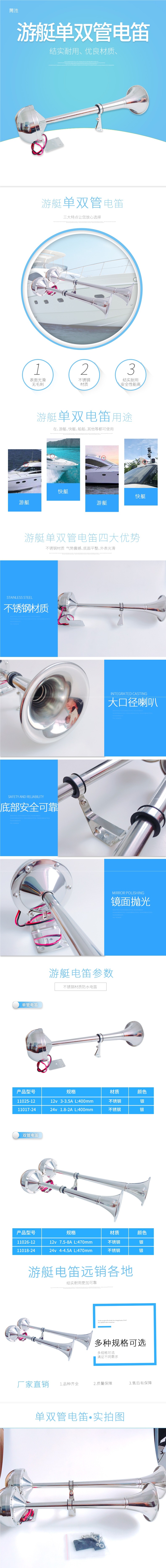 해양 전기 경적 스테인레스 스틸 요트 자동차 12V24V 단일 튜브 더블 튜브 하이 저음 전기 플루트 에어 혼 스피커스토어 가기