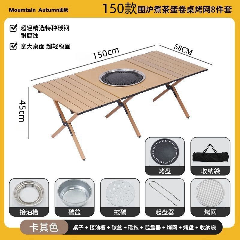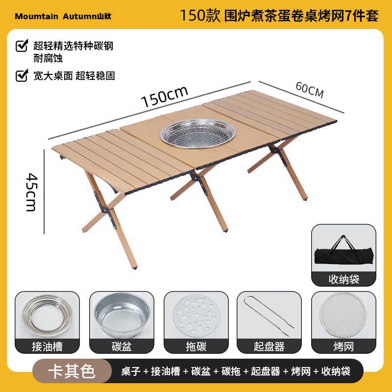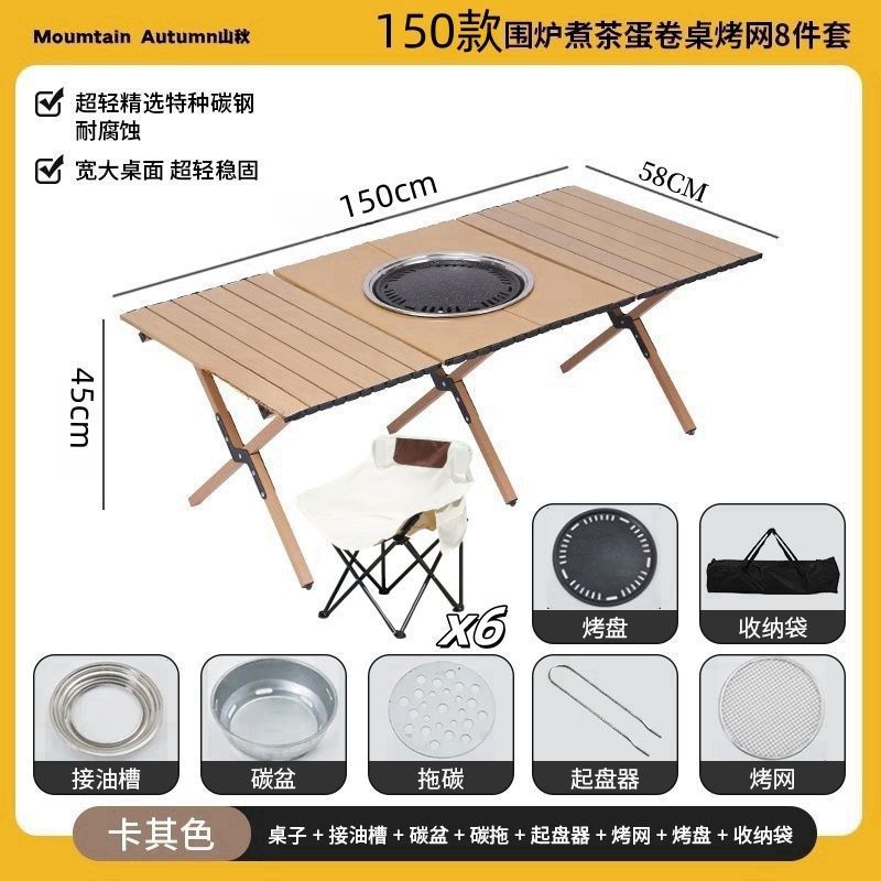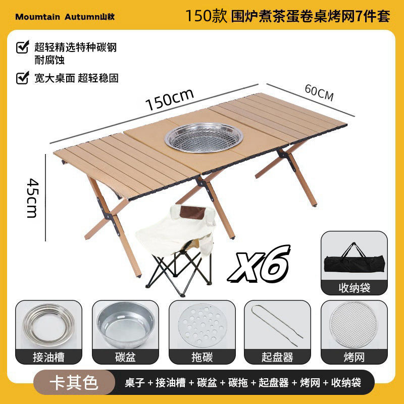 • 사막 노란색 다기능 난로 위에 차 계란말이 테이블, 150 그릴 메쉬 세트 + 6 달 의자 그릴 팬 버전