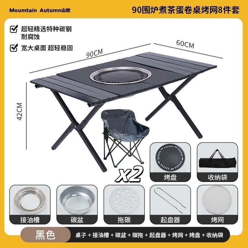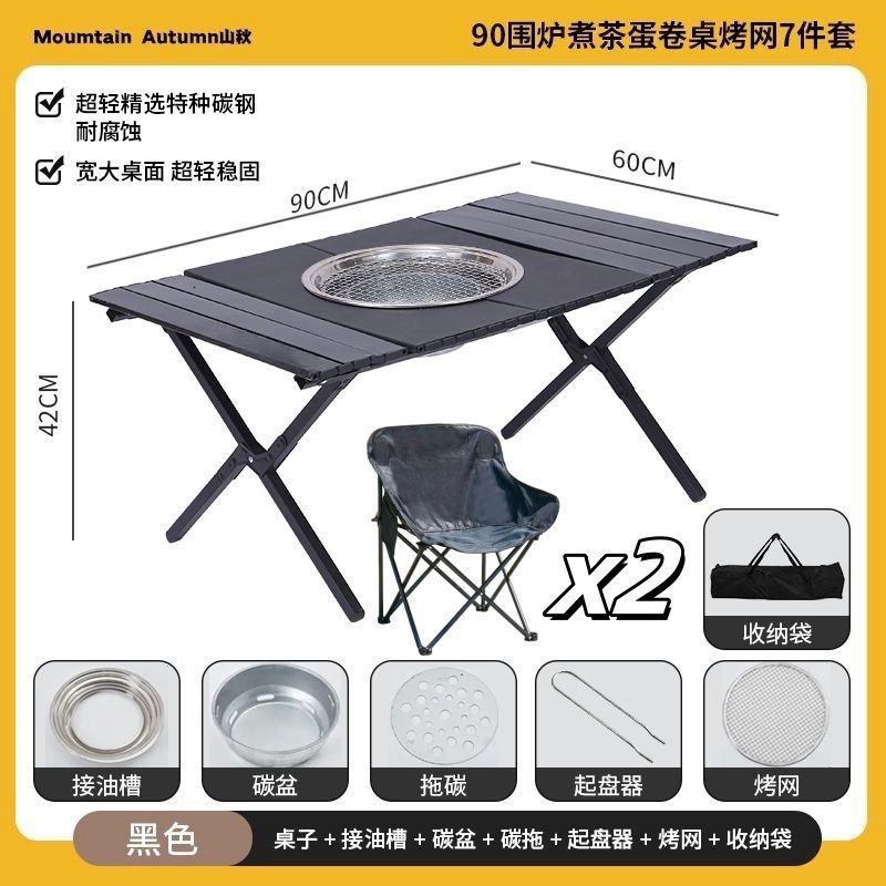 • 블랙 매트 - 다기능 난로 위에서 차 계란말이 테이블, 90 그릴 그릴 세트 + 달 의자 그릴 버전 2개