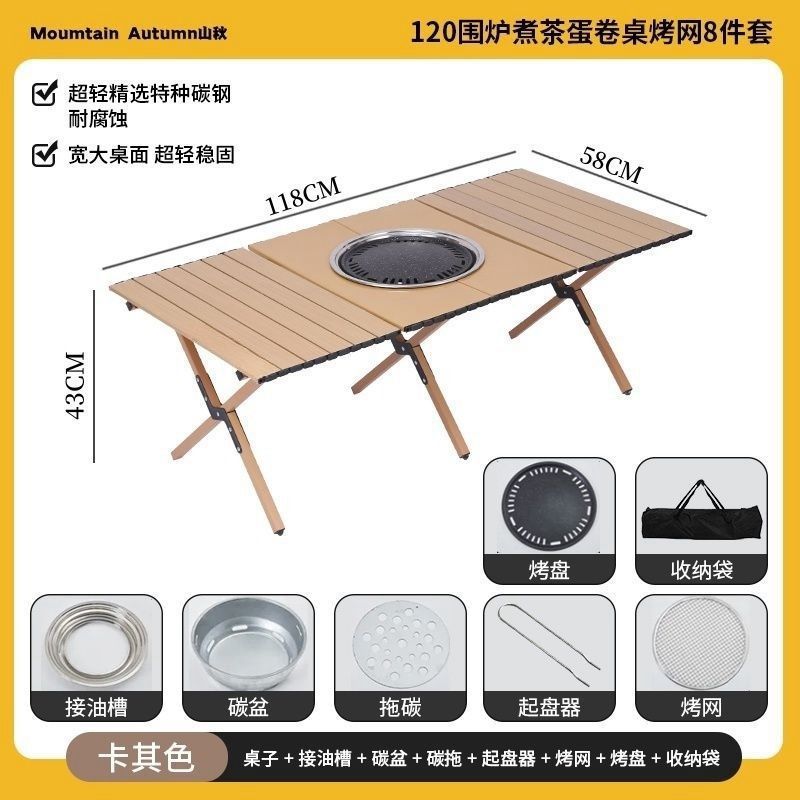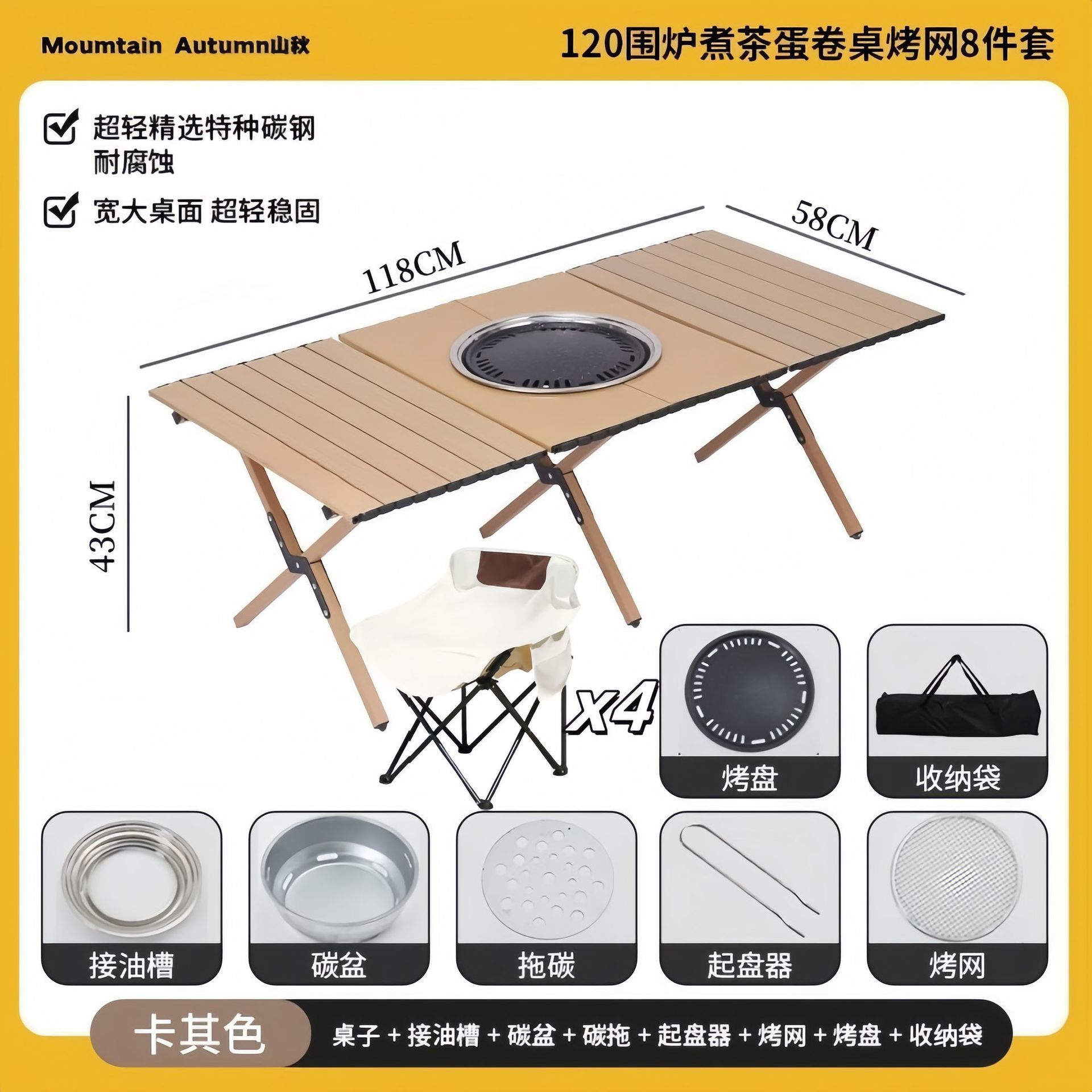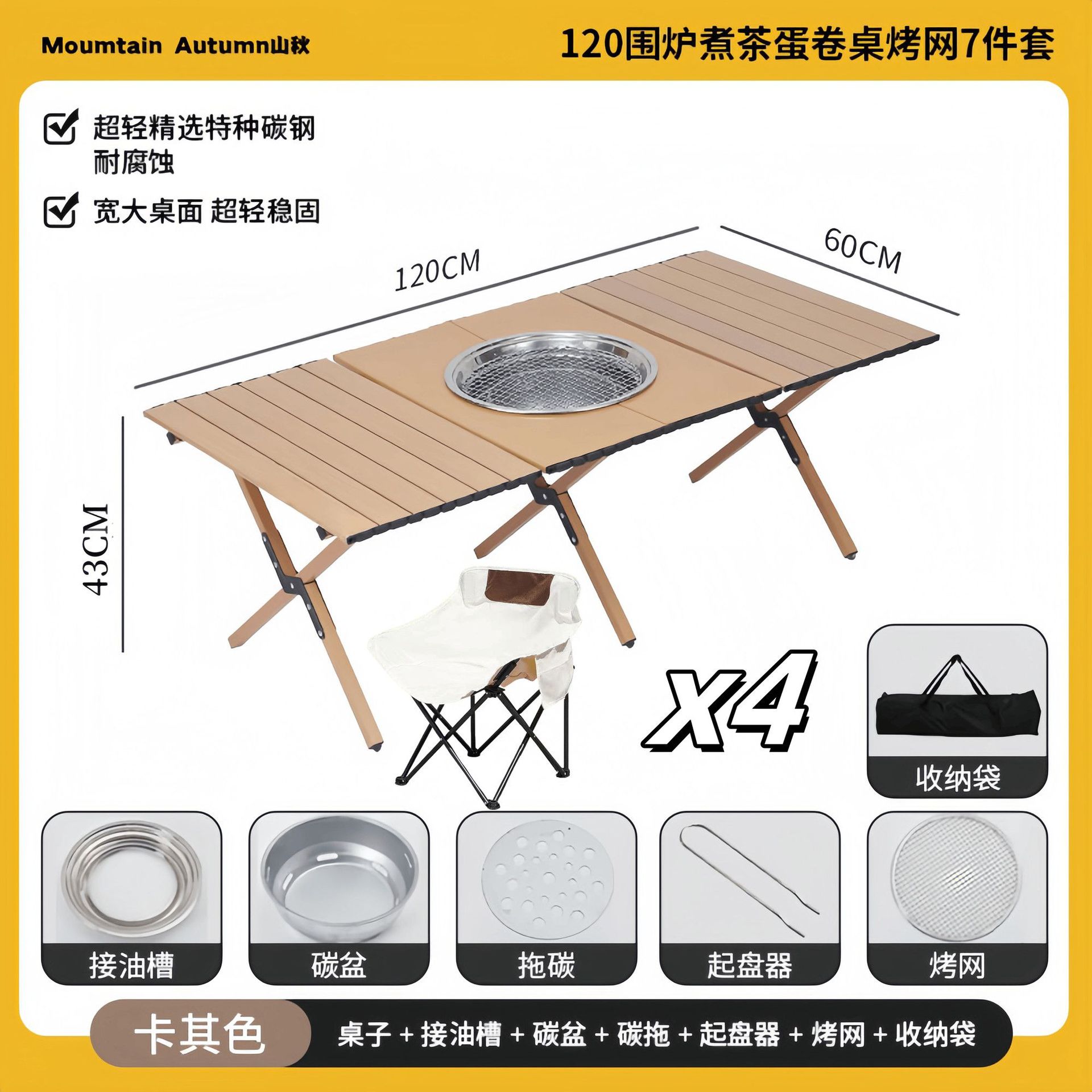 • 사막 노란색 다기능 난로 위에 차 계란말이 테이블, 120 그릴 그릴 세트 + 달 의자 그릴 버전 4개