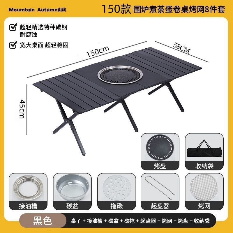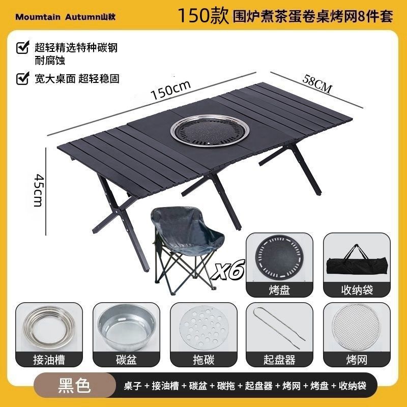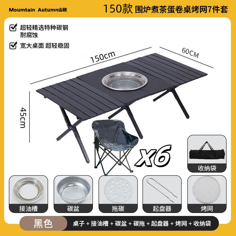 • 블랙 매트 - 다기능 난로 위에서 차 계란말이 테이블, 150 그릴 그릴 세트 + 달 의자 그릴 버전 6개