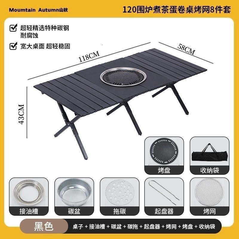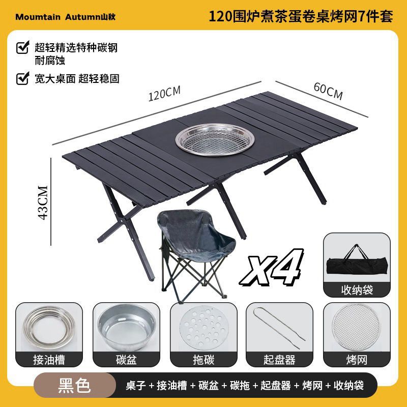 • 블랙 매트 - 다기능 난로 위에서 차 계란말이 테이블, 120 그릴 그릴 세트 + 달 의자 그릴 버전 4개