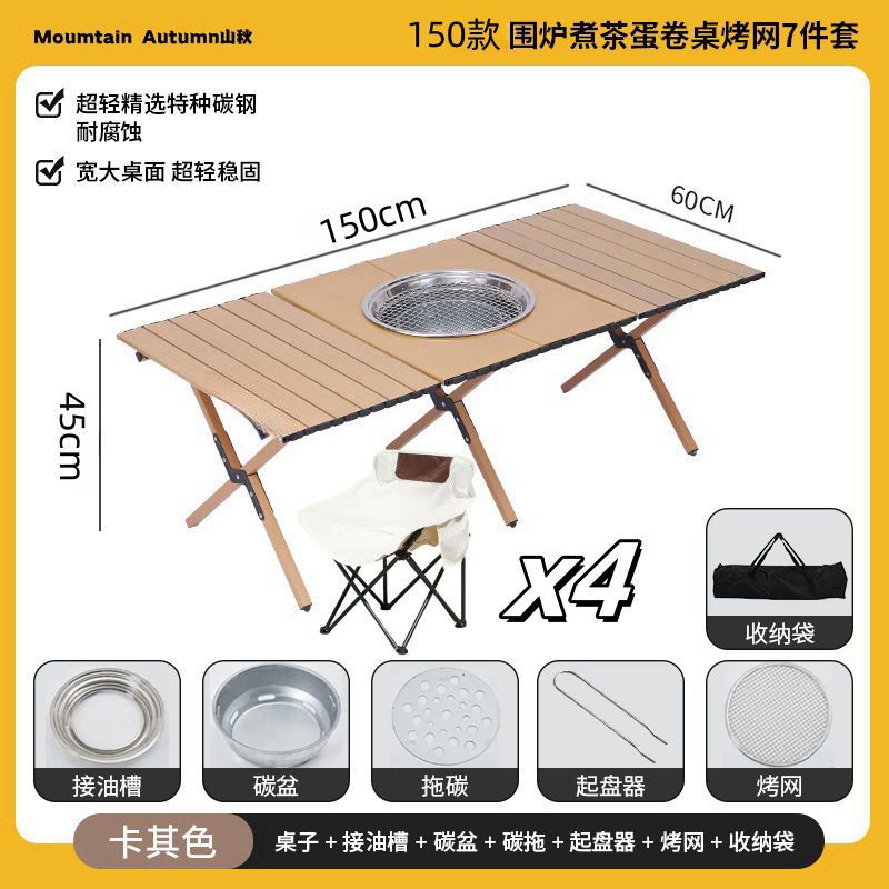 • 사막 노란색 다기능 난로 위에 차 계란말이 테이블, 150 그릴 그릴 세트 + 달 의자 그릴 버전 4개