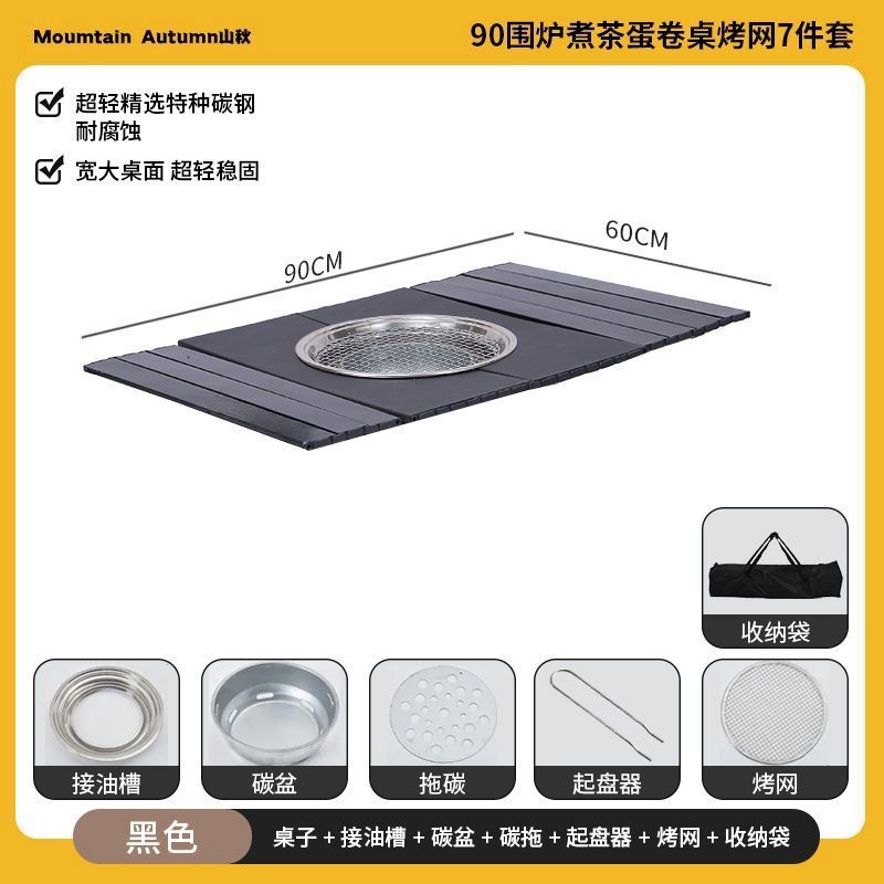 • 블랙 매트 - 다기능 난로 위에서 차 계란말이 요리 테이블, 스탠드 포함 90 그릴 메쉬 세트 [권장]
