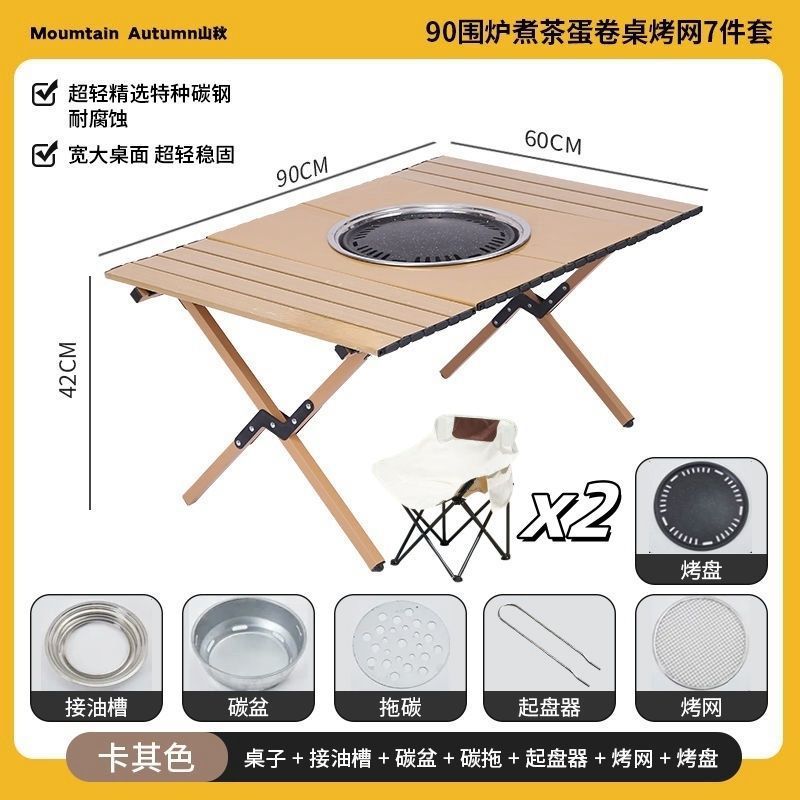 • 사막 노란색 다기능 난로 위의 차 계란말이 테이블, 90 그릴 메쉬 세트 + 달 의자 베이킹 팬 버전 2개