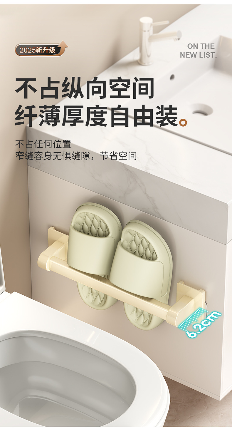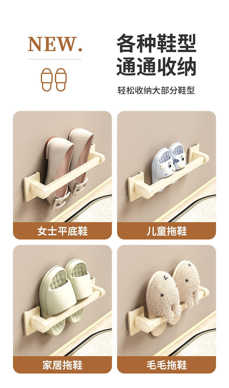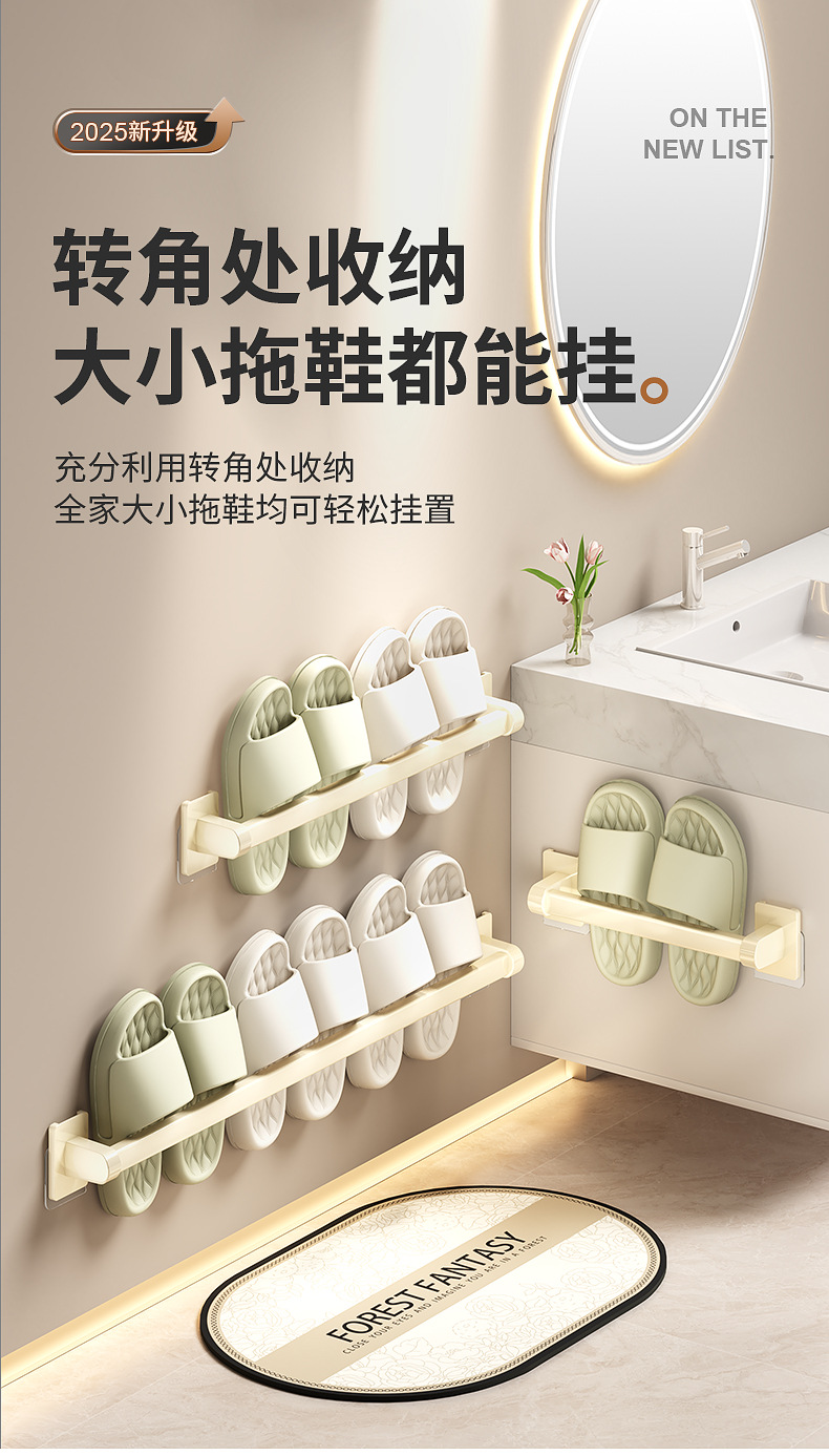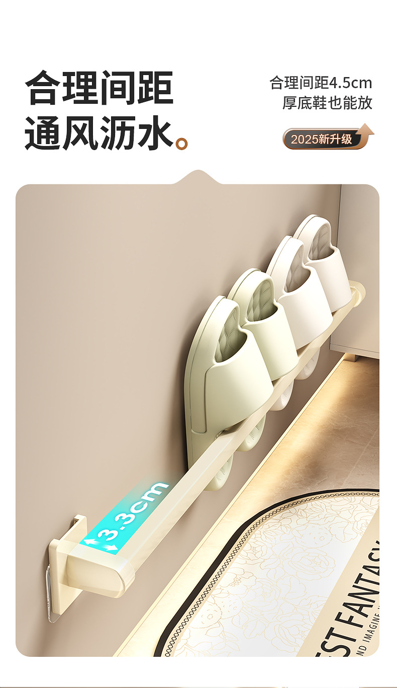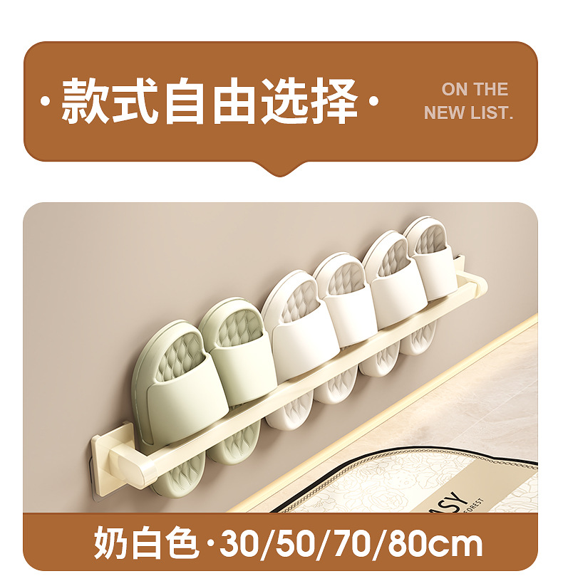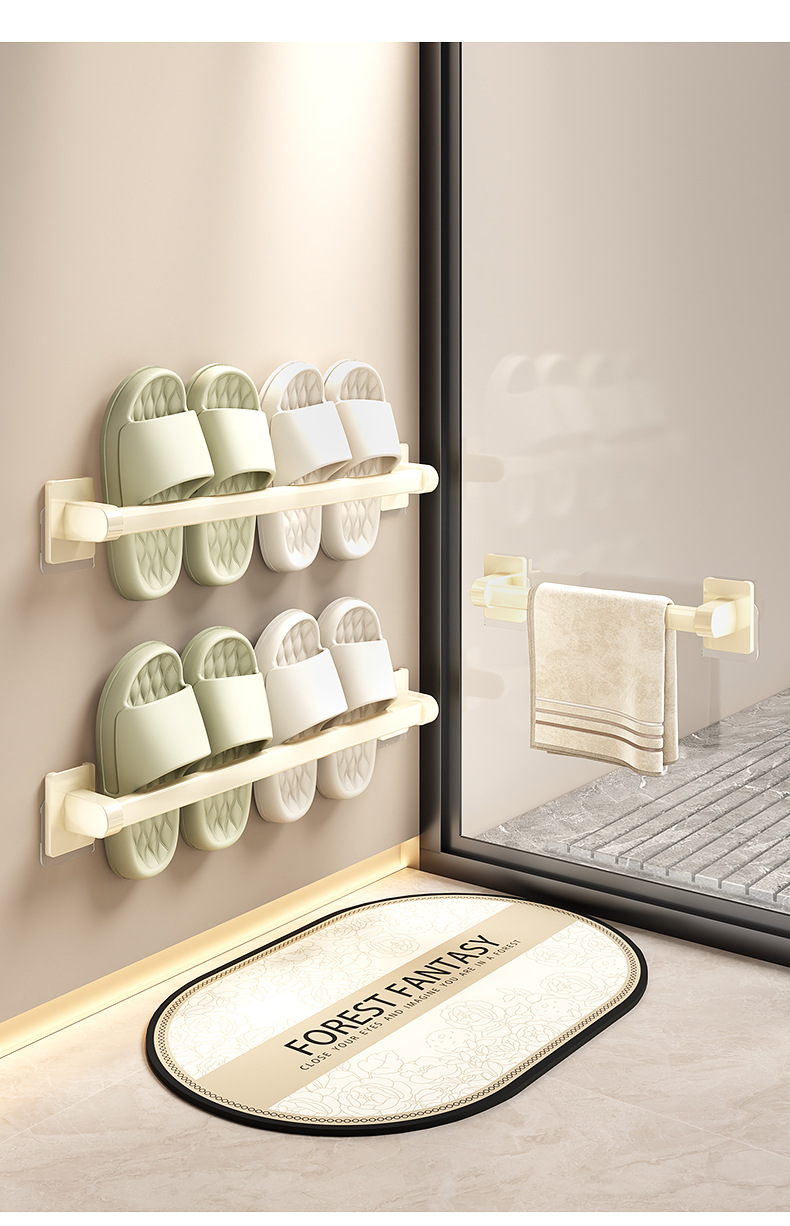 욕실 문 뒤에 있는 밀키 화이트 슬리퍼 레일, 슬리퍼 보관함, 발코니 신발 걸이, 벽걸이형 펀치 없는 화장실 선반스토어 가기