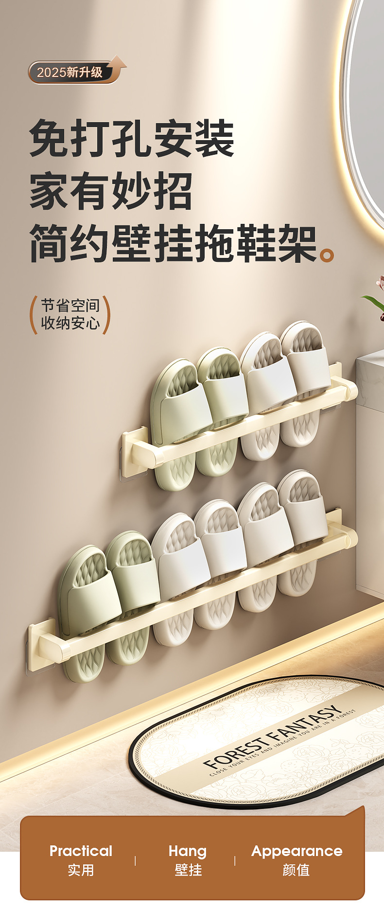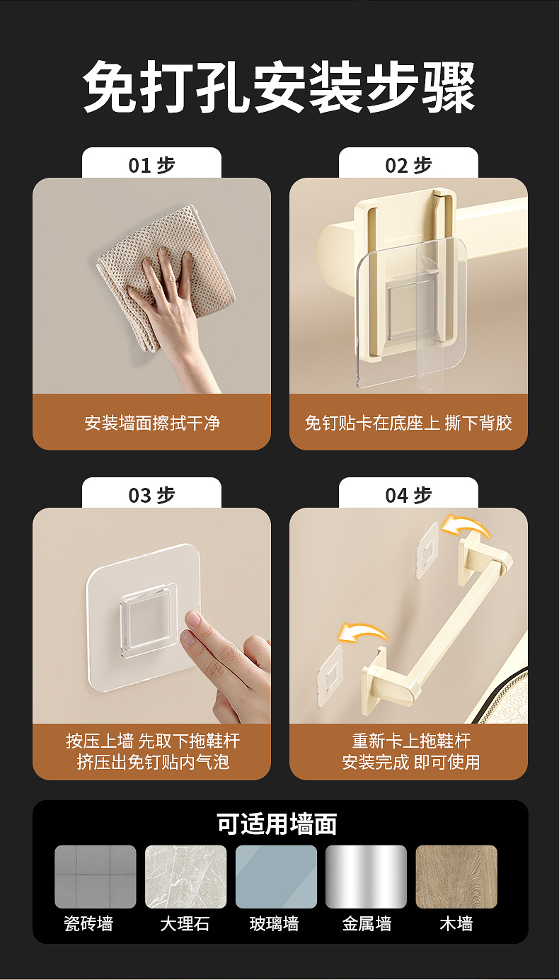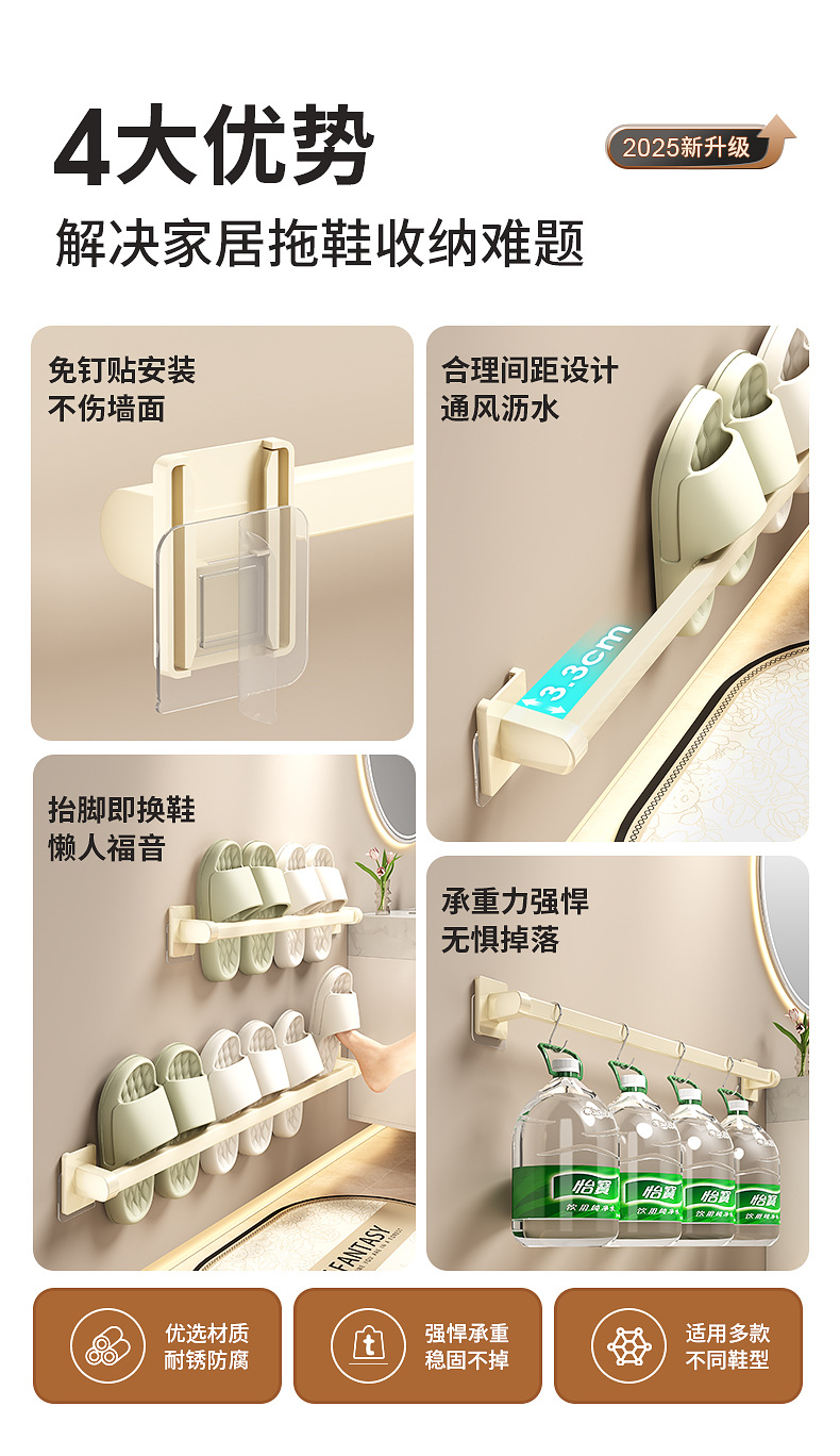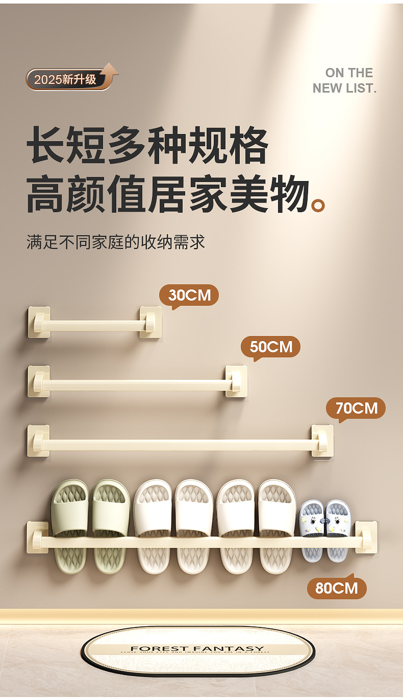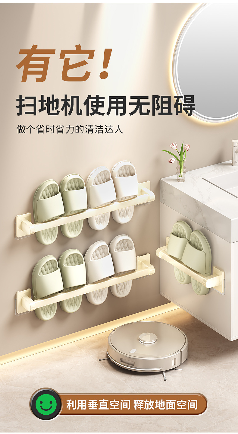 욕실 문 뒤에 있는 밀키 화이트 슬리퍼 레일, 슬리퍼 보관함, 발코니 신발 걸이, 벽걸이형 펀치 없는 화장실 선반스토어 가기