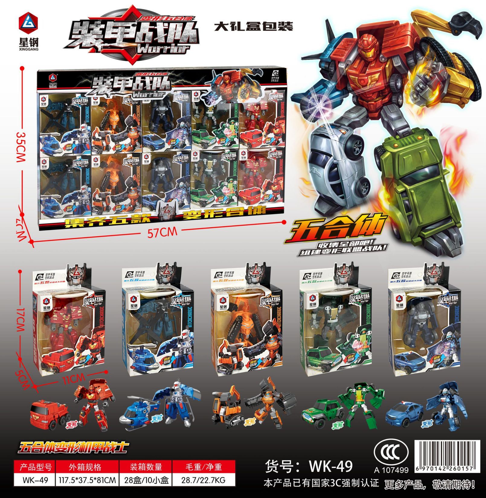 스타 스틸 WK-49 갑옷 전대 소년 변형 메카 전사 장난감 변형 로봇 도매