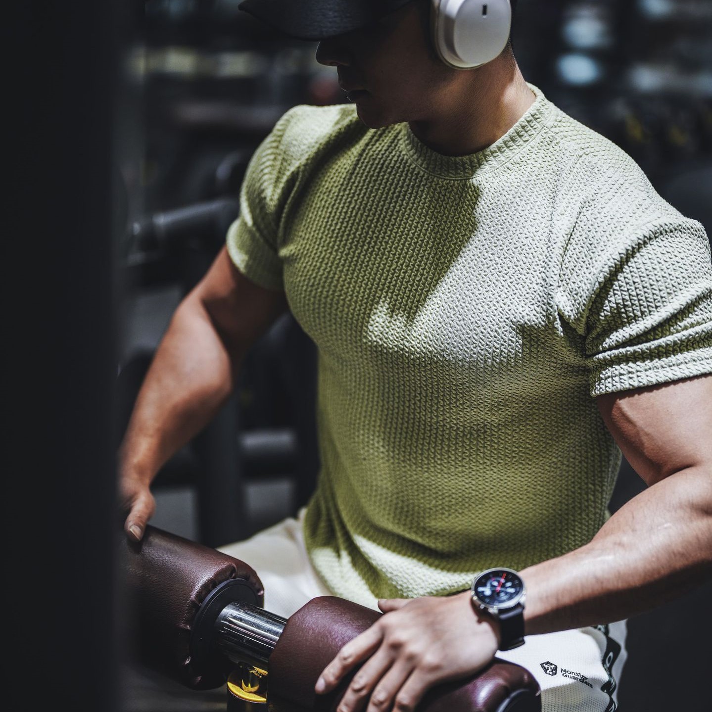 纯色短袖男运动T恤肌理纹抗皱训练篮球弹力美式圆领速干健身衣服