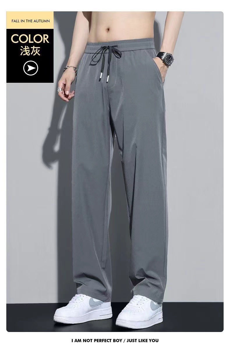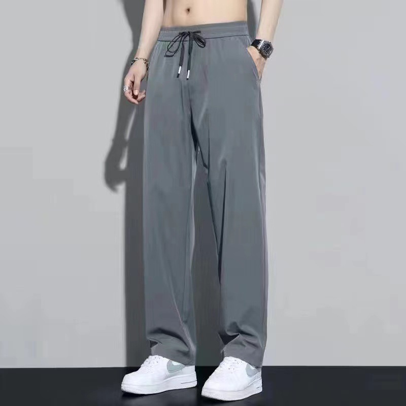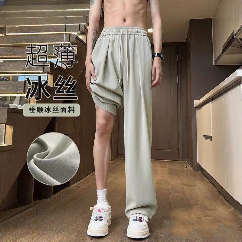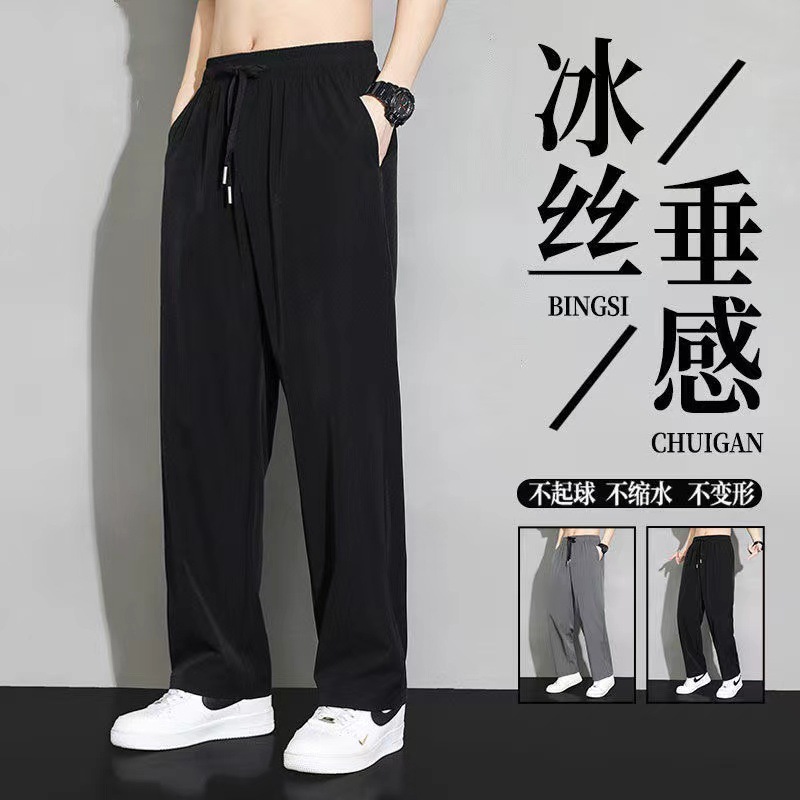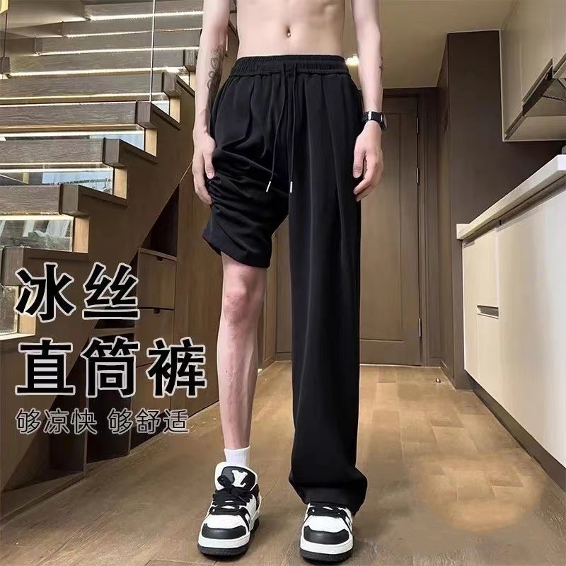 바지 남자 아이스 실크 바지 느슨한 유행 브랜드 스포츠 바지 남자 스트레이트 캐주얼 바지 블랙 바지 자른 바지 바지 여름스토어 가기