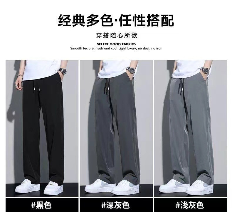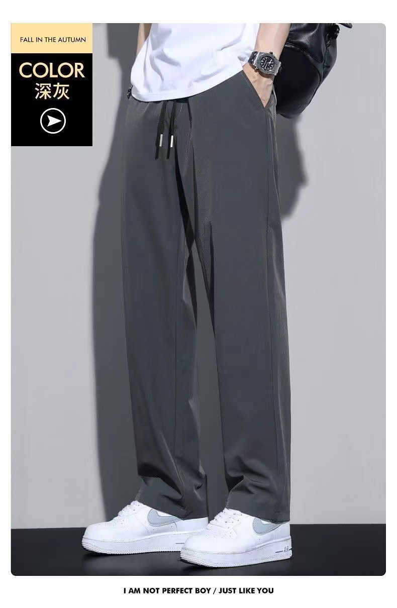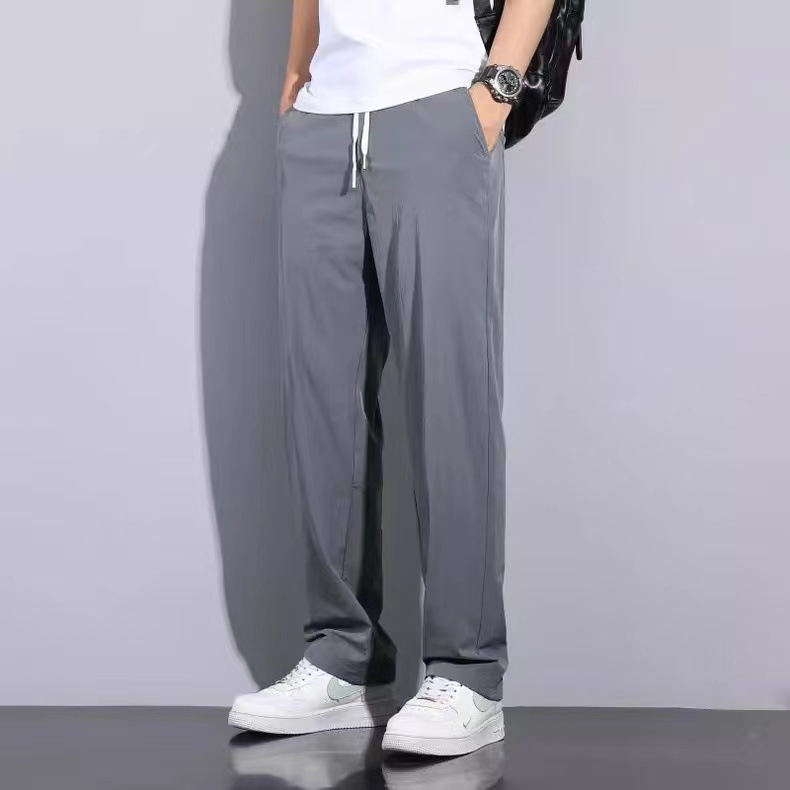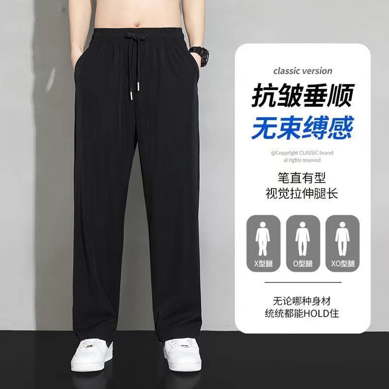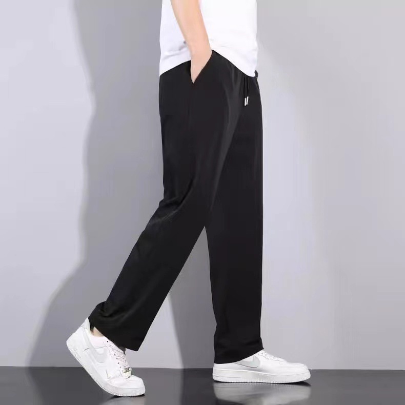 바지 남자 아이스 실크 바지 느슨한 유행 브랜드 스포츠 바지 남자 스트레이트 캐주얼 바지 블랙 바지 자른 바지 바지 여름스토어 가기