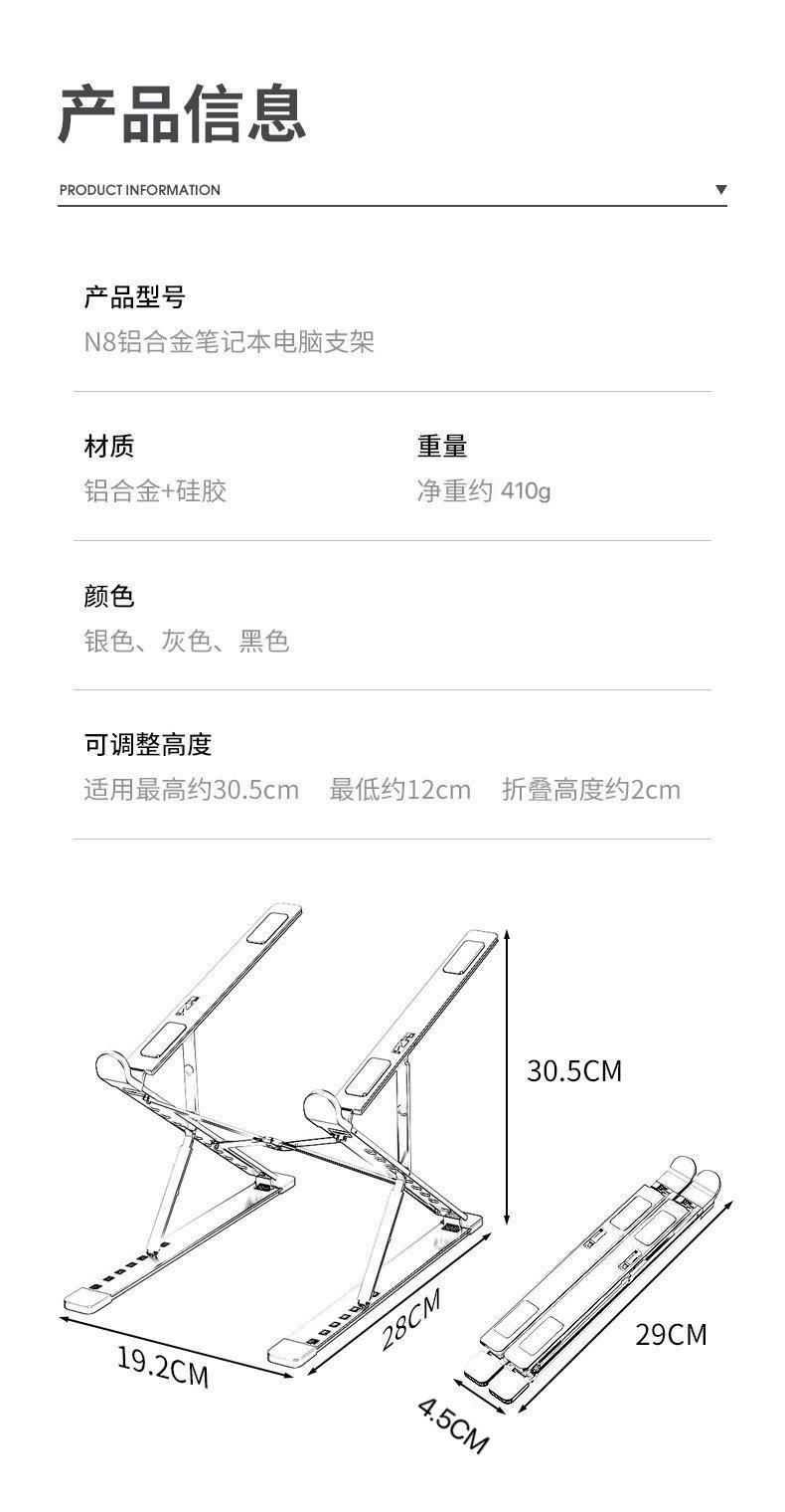 더블 레이어 N8 컴퓨터 스탠드 강화 알루미늄 합금 노트북 냉각 베이스 태블릿 금속 리프팅 접이식 스탠드