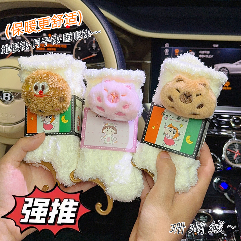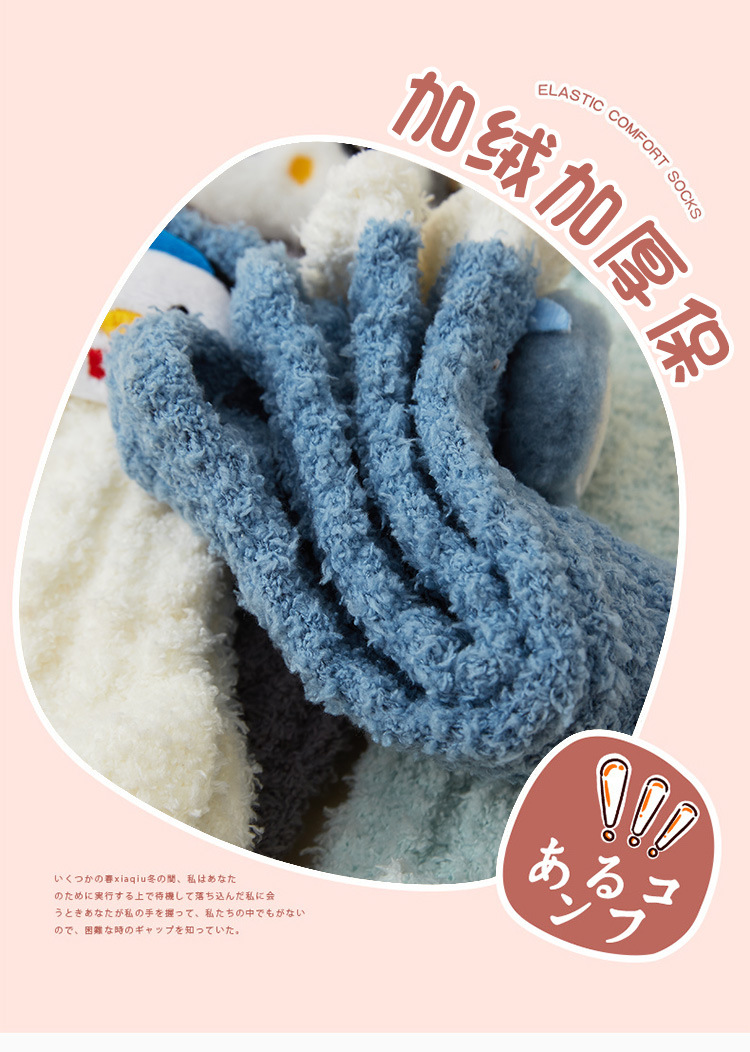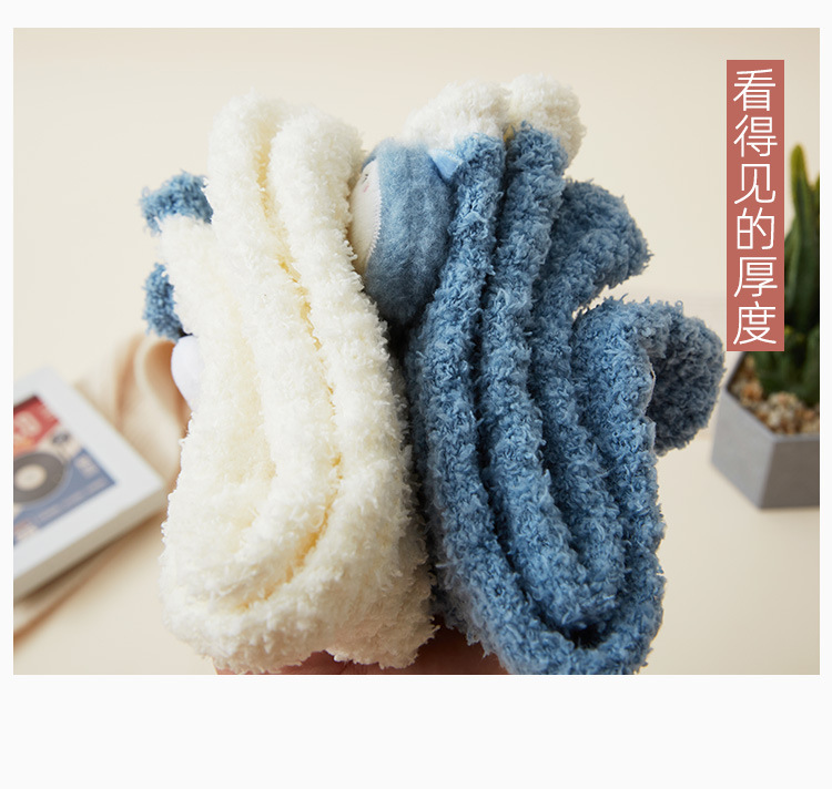 가을 겨울 여성용 인형 산호 벨벳 양말 플러스 벨벳 두꺼운 따뜻한 일본식 귀여운 흰색 홈 수면 양말스토어 가기