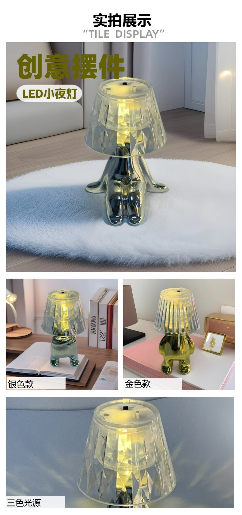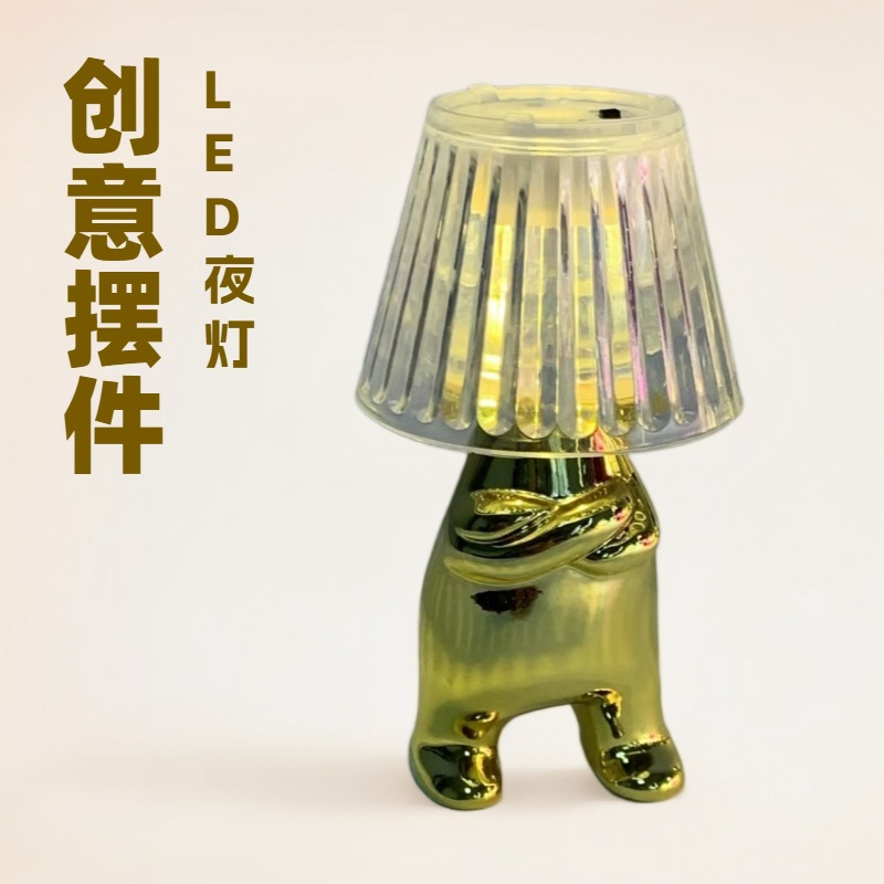 새로운 전기 도금 작은 골드 인형 분위기 램프 크리 에이 티브 장식품 거실 빛나는 야간 조명 침실 데스크탑 테이블 램프 크로스 보더스토어 가기