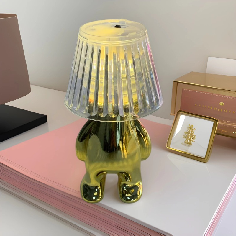 새로운 전기 도금 작은 골드 인형 분위기 램프 크리 에이 티브 장식품 거실 빛나는 야간 조명 침실 데스크탑 테이블 램프 크로스 보더