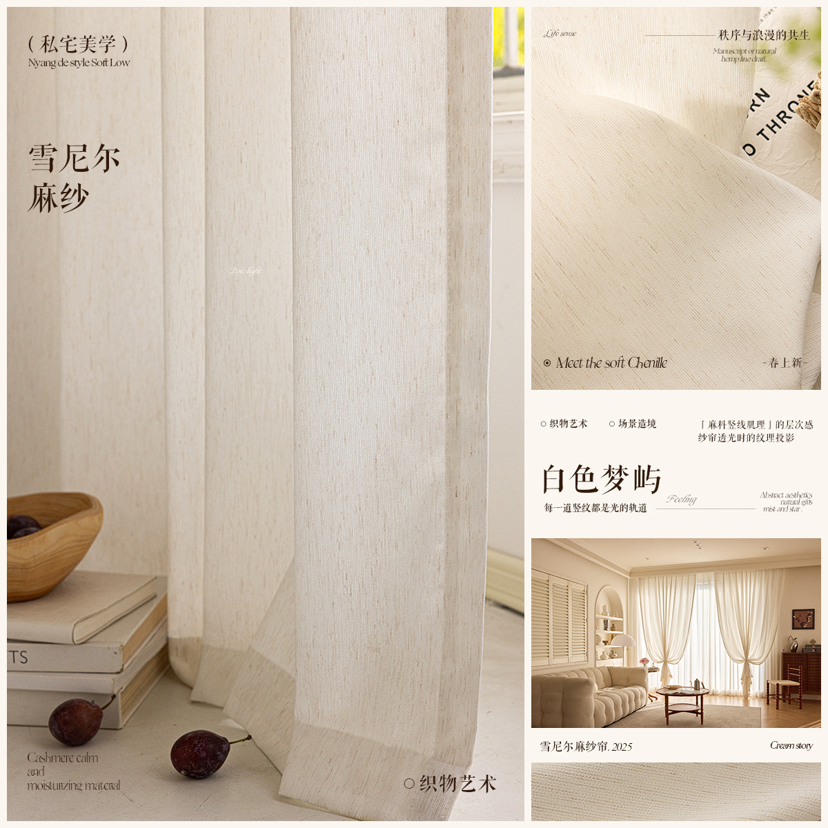 발코니 거실 거즈 커튼은 빛을 투과하지 않고 시어링 린넨 거즈 커튼 2025 새로운 스타일의 가벼운 고급 창 스크린스토어 가기