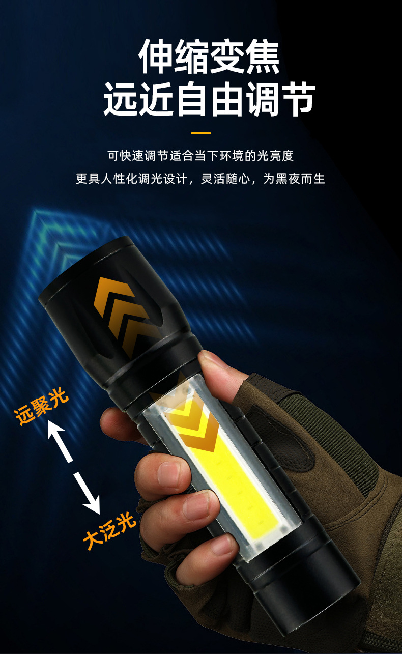 미니 야외 강한 빛 충전식 손전등 COB 측면 조명 학생 알루미늄 합금 휴대용 511led 작은 손전등