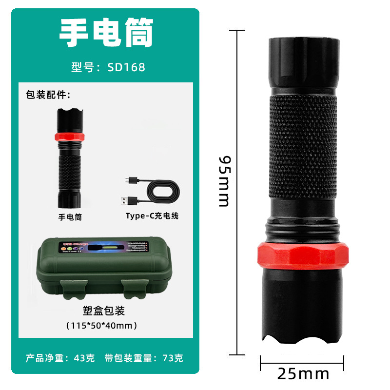 • 168 손전등 [리튬 배터리 내장 + 충전 케이블 + 테일 로프 + 플라스틱 상자]