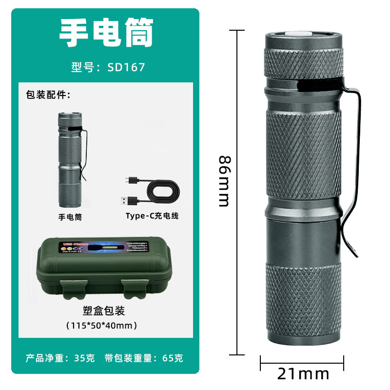 • 167 손전등 [리튬 배터리 내장 + 충전 케이블 + 테일 로프 + 플라스틱 상자]