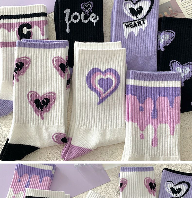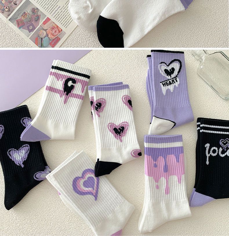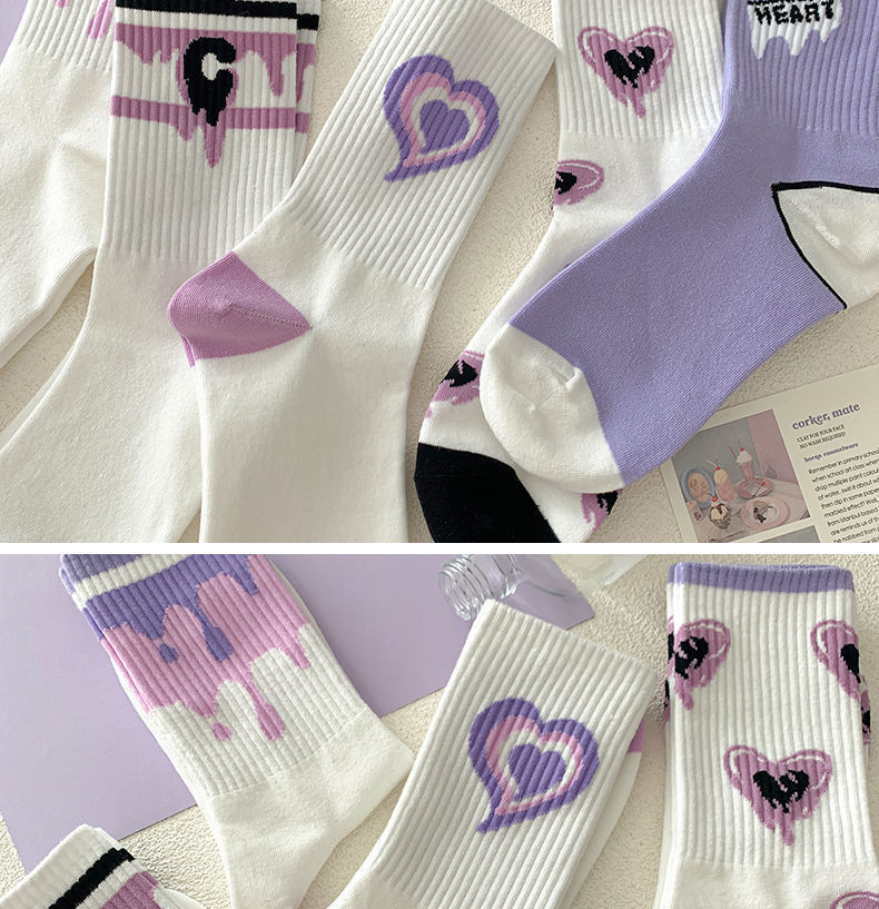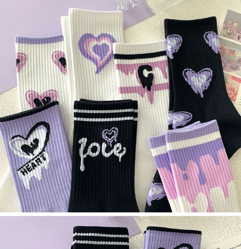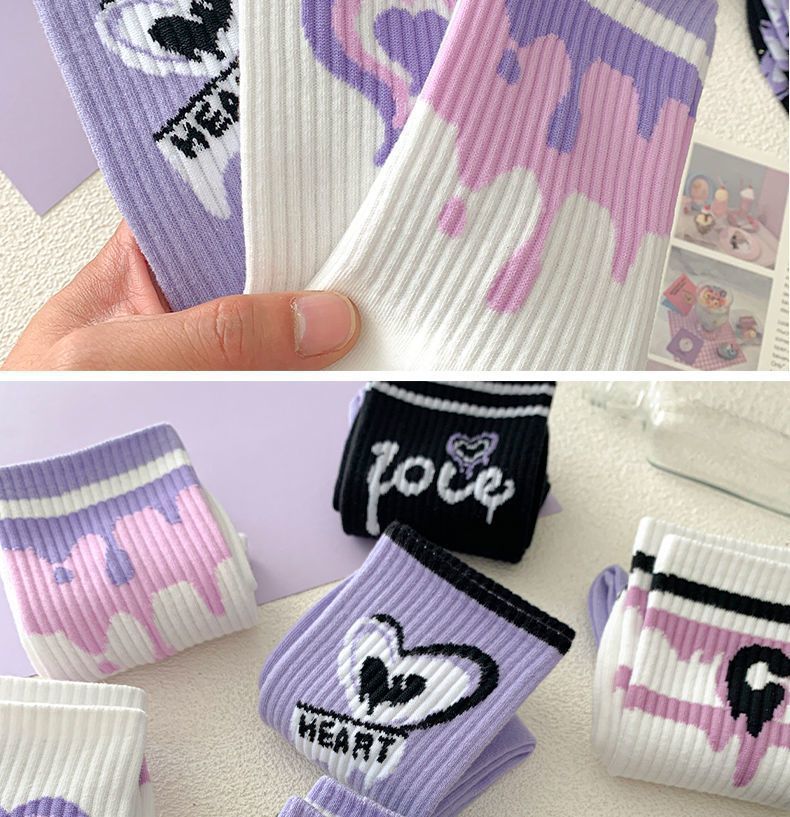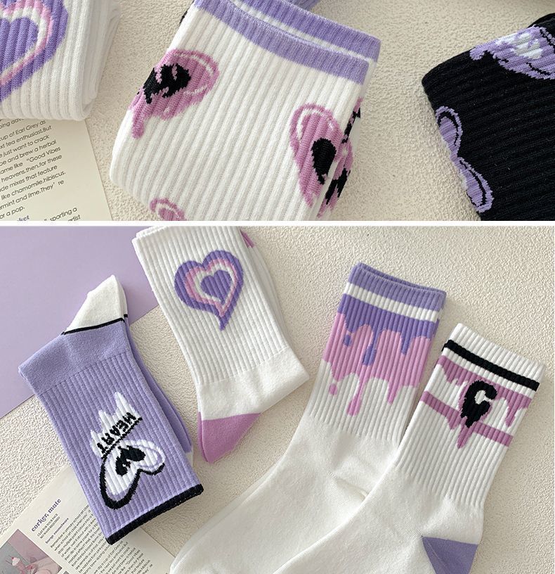 가을 겨울 여성용 종아리 중간 양말, 트렌디하고 다재다능한 미국식 긴 만화 스포츠 양말스토어 가기