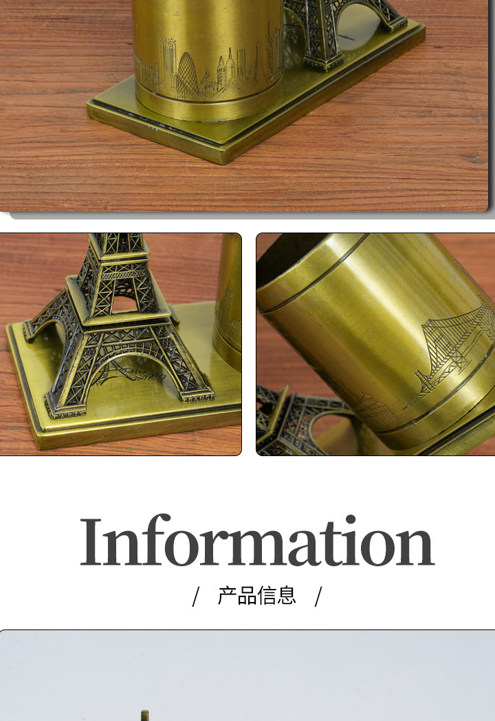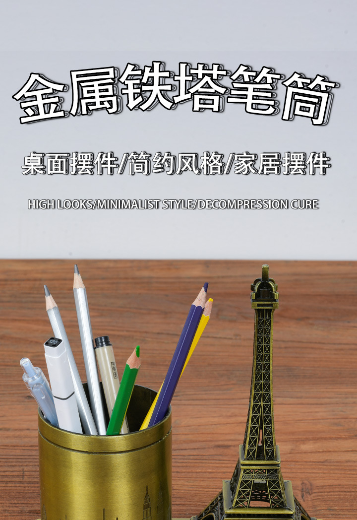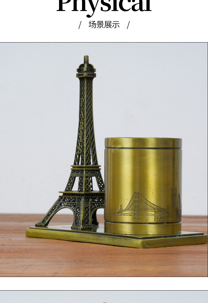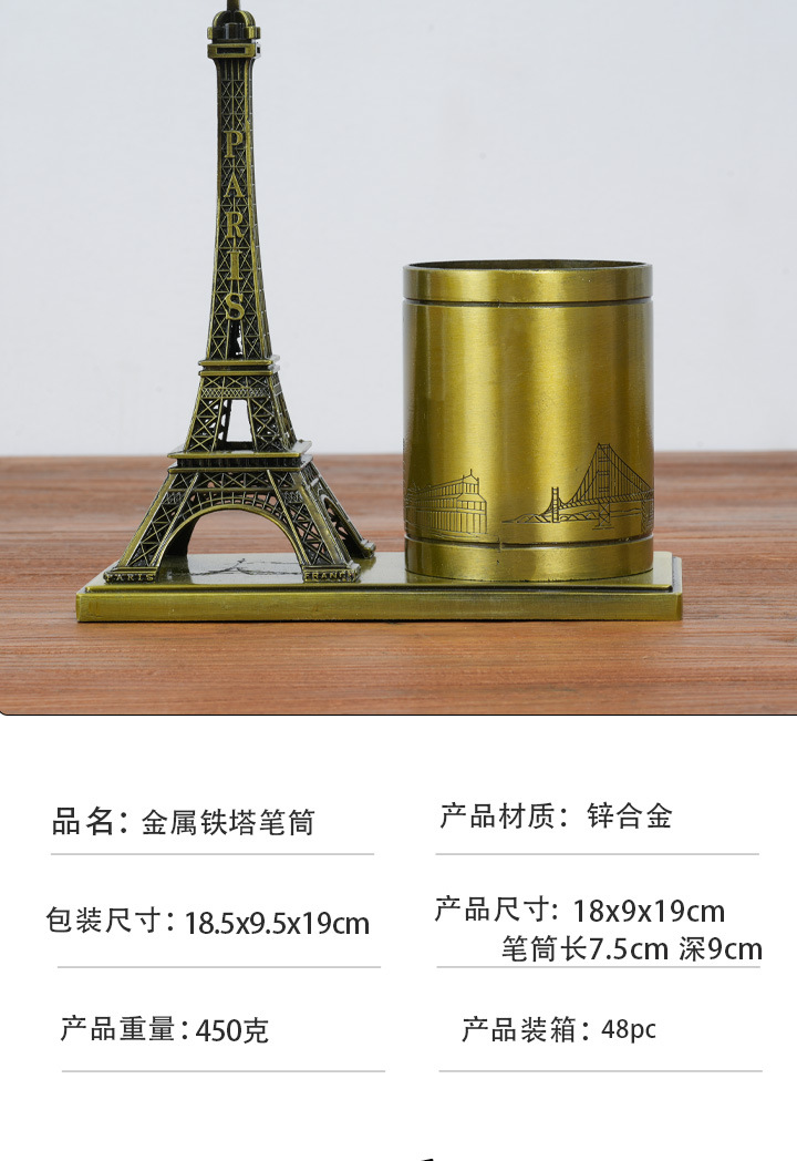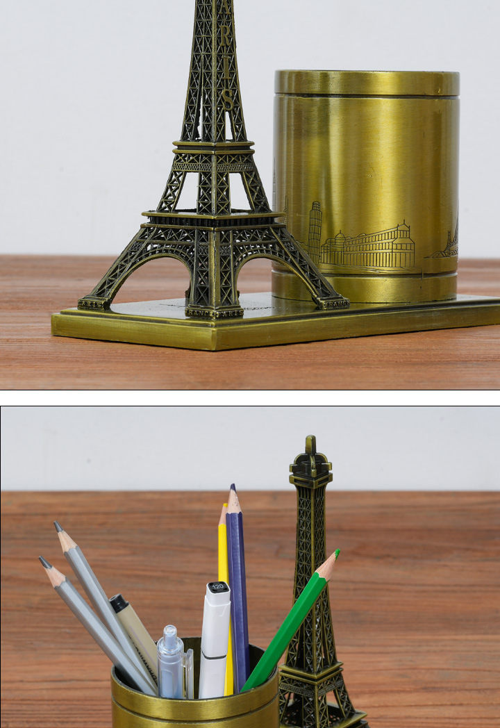 합금 펜 홀더 에펠 탑 선물 사무실 장식 학생 문구 상자 사무실 보관 장식품스토어 가기