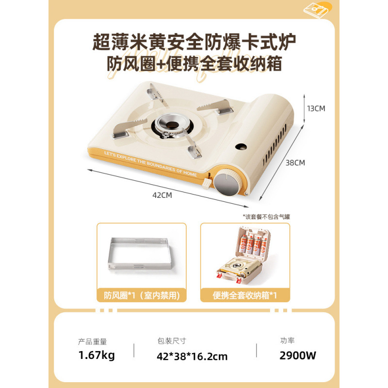 • 초박형 베이지 안전 방폭 카세트 스토브 + 방풍 링 + 휴대용 보관함 풀 세트