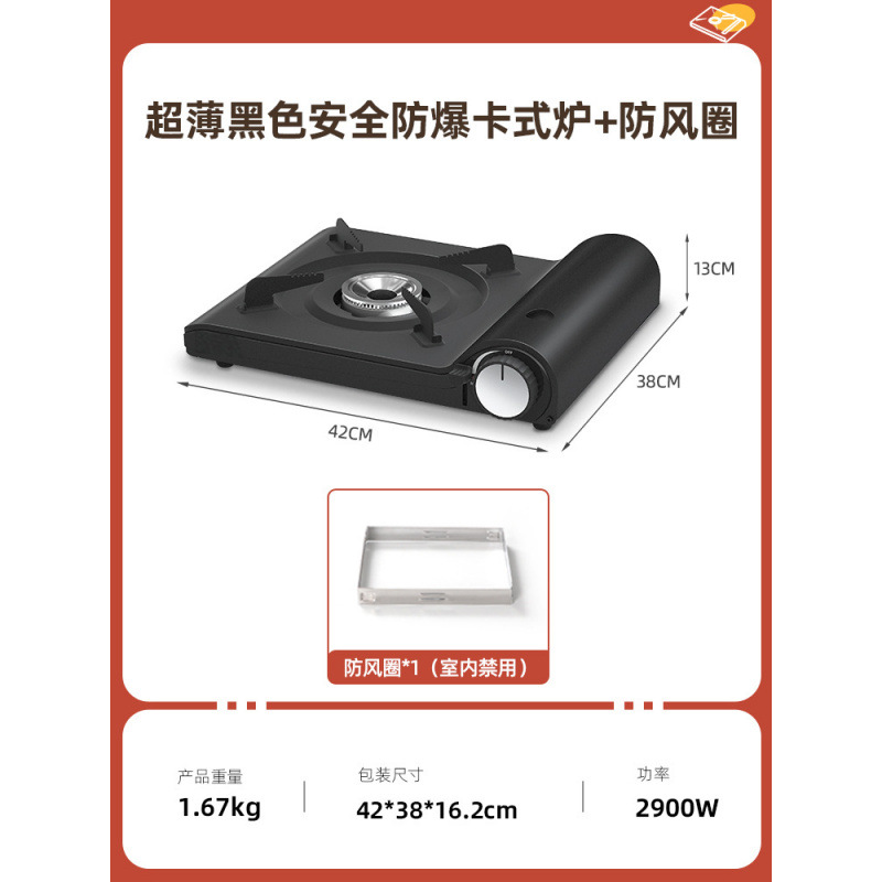 • 초박형 검정색 안전 방폭 카세트 스토브 + 방풍 링