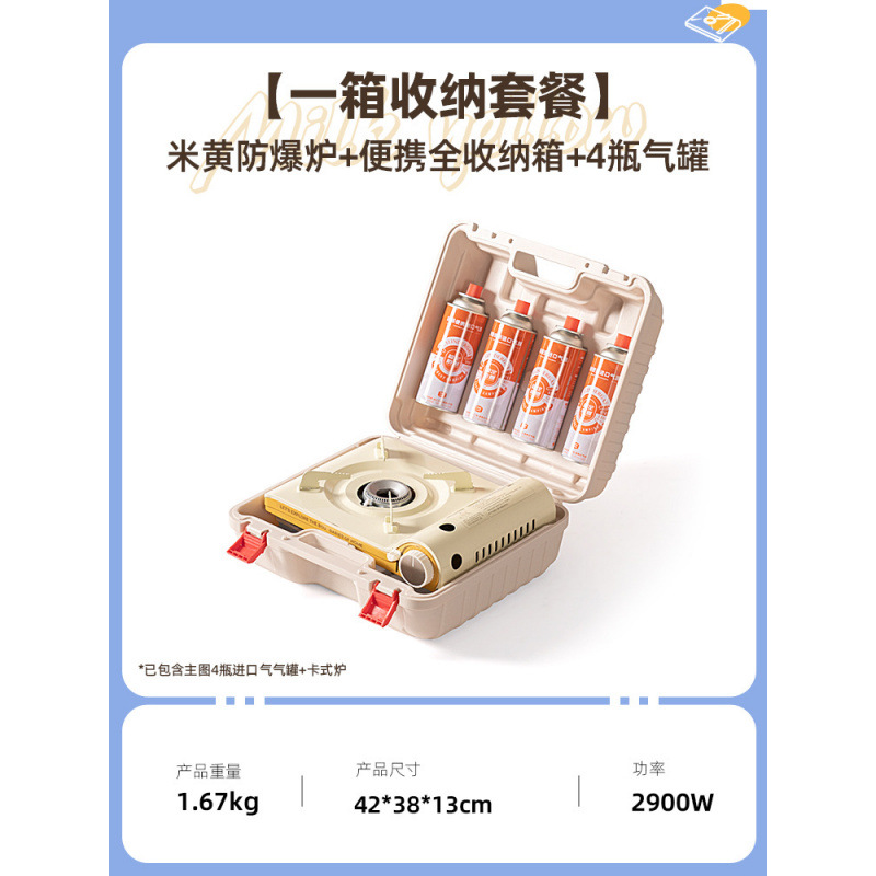 • 초박형 베이지색 안전 방폭 카세트 스토브 + 휴대용 보관함 풀세트 + 가스 4병