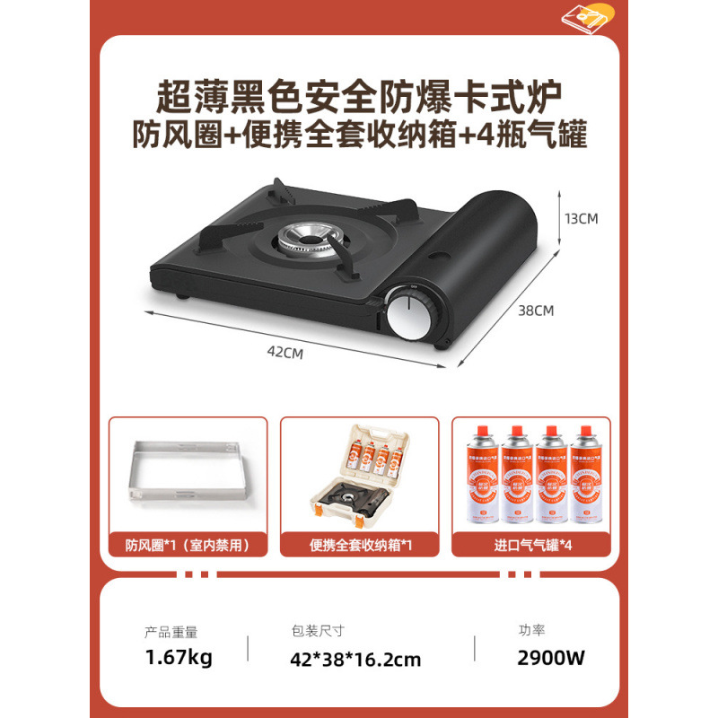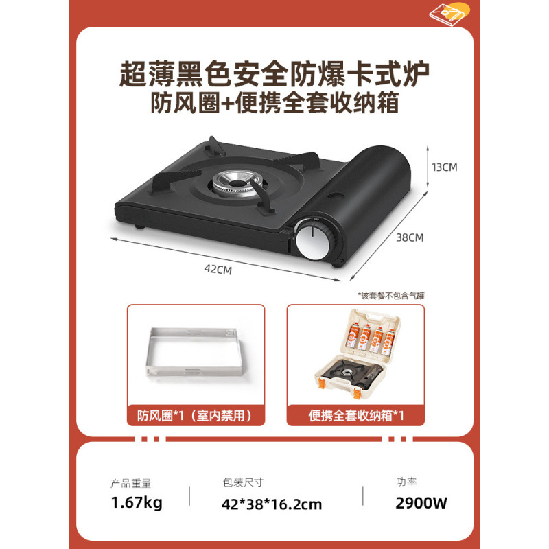 • 초박형 검정색 안전 방폭 카세트 스토브 + 방풍 링 + 휴대용 보관함 전체 세트