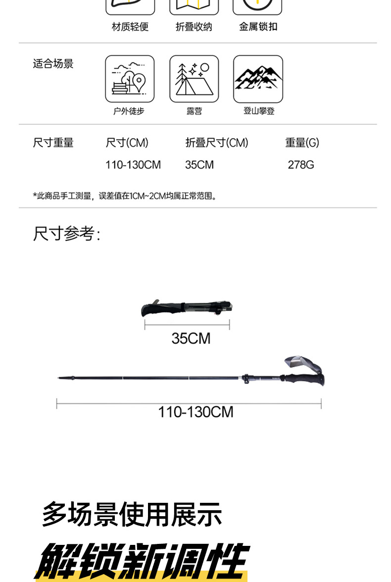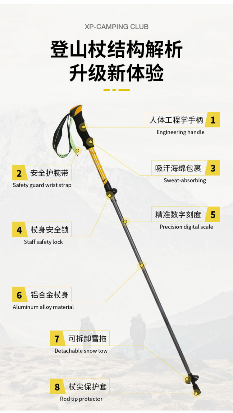 경량 7075 알루미늄 합금 야외 접이식 등산 스틱 전문 하이킹 등산 지팡이 장비스토어 가기