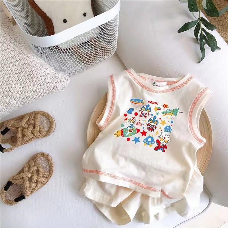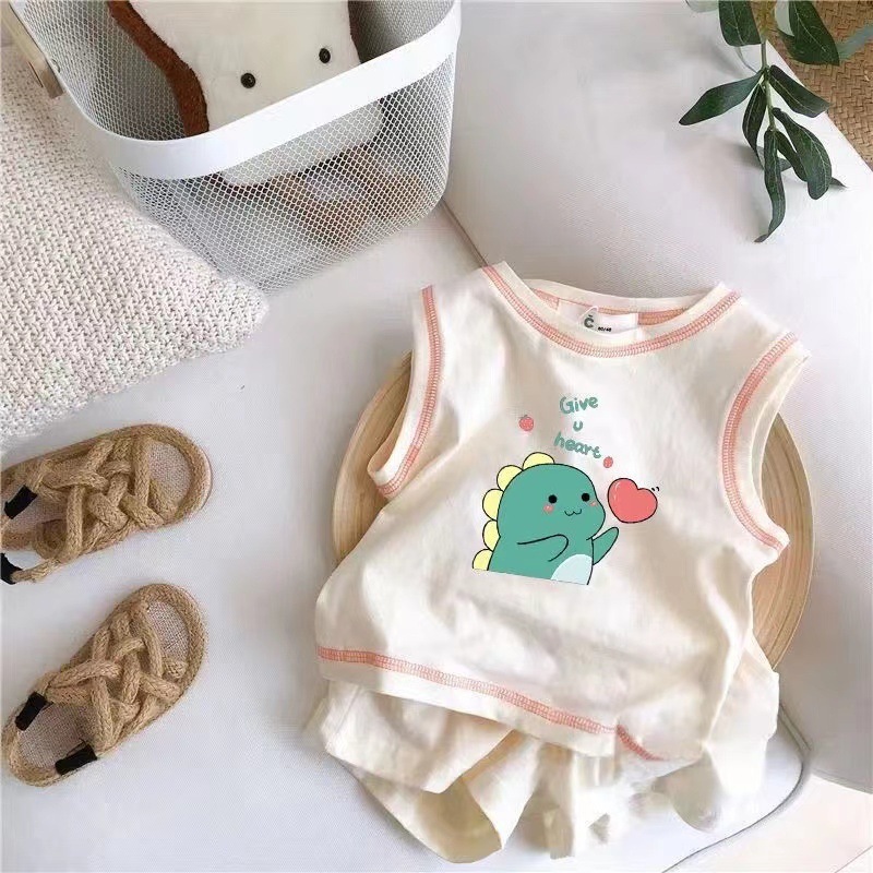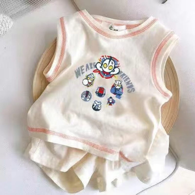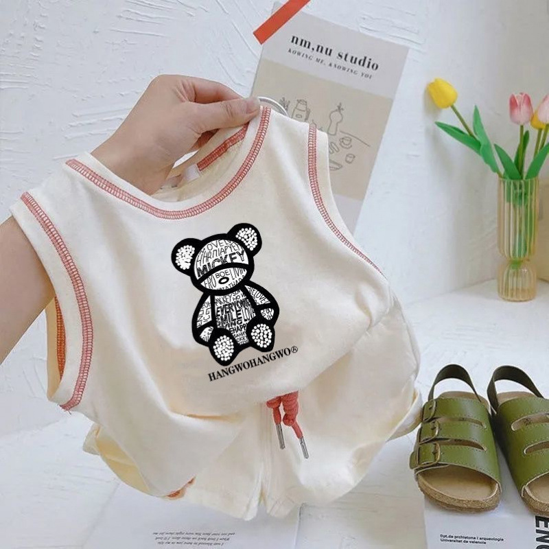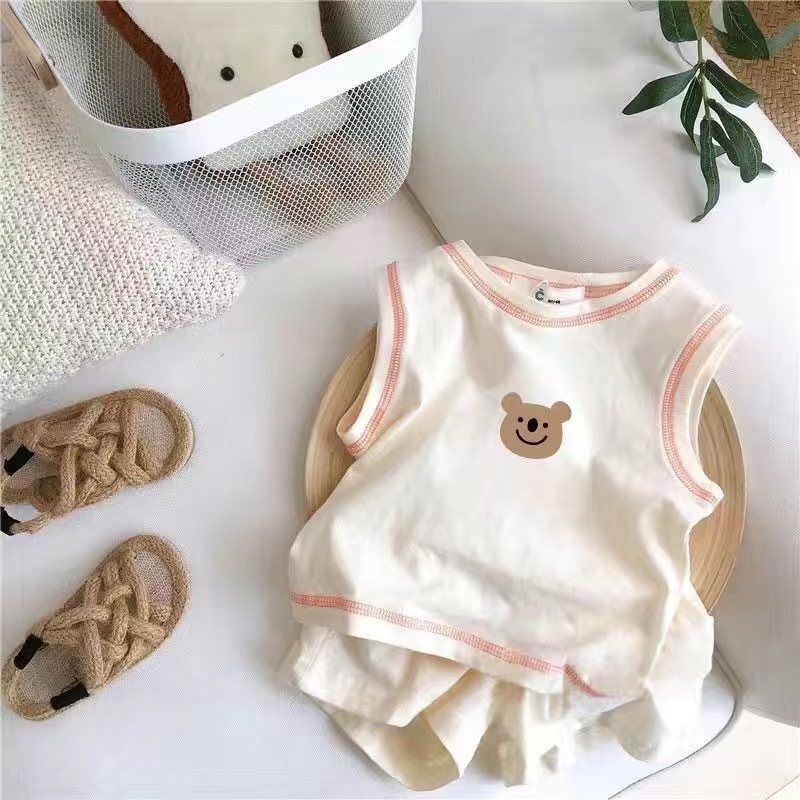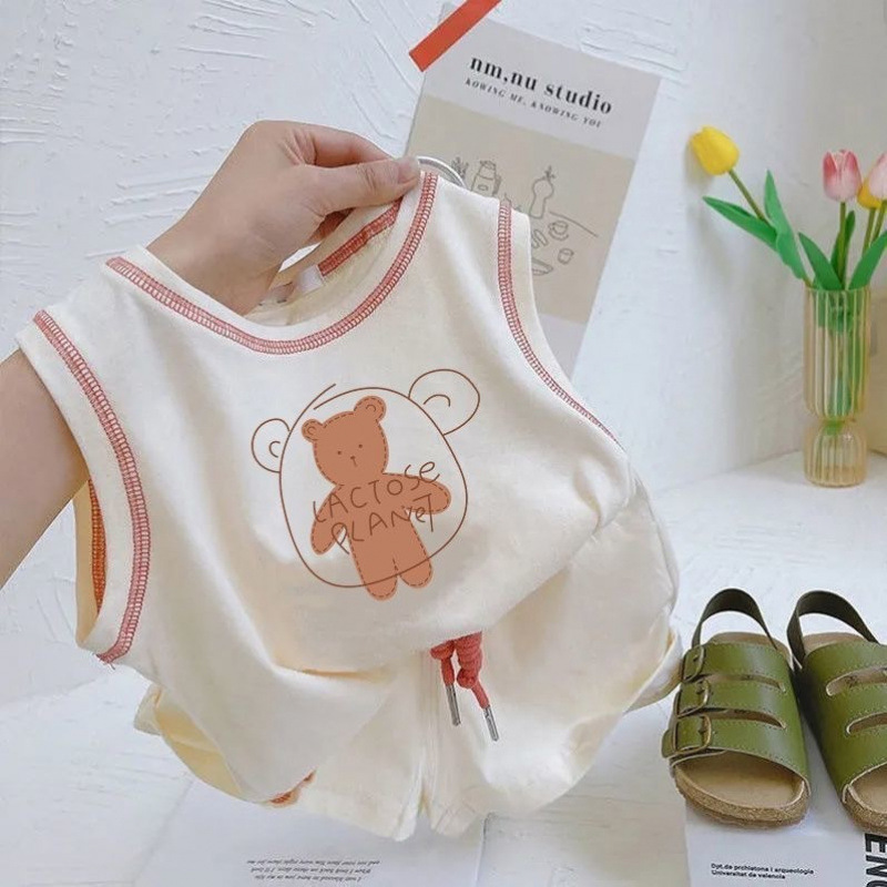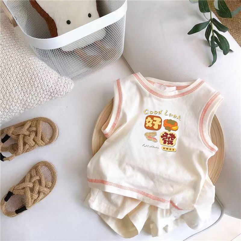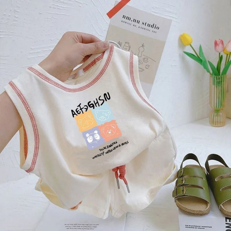 아기의 여름 세트 2025 소년 소녀 민소매 조끼 스포츠 스타일 새로운 어린이 코튼 반바지 투피스 세트스토어 가기