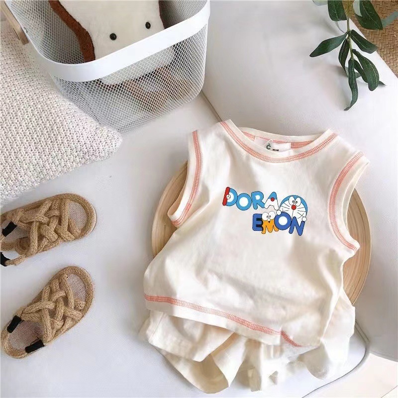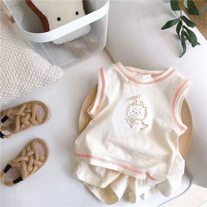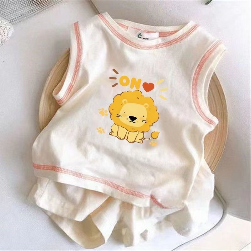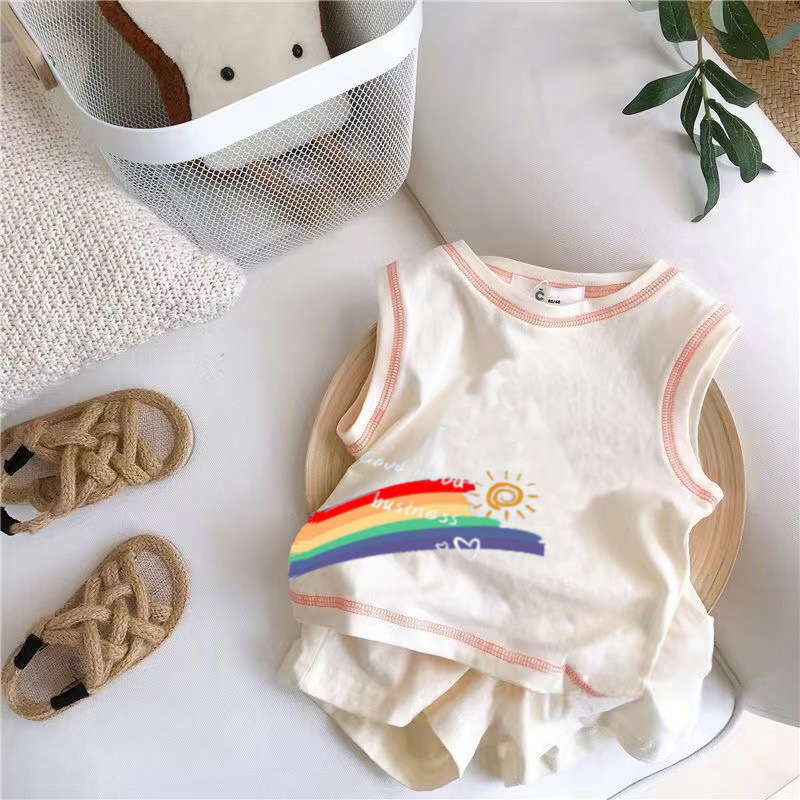 아기의 여름 세트 2025 소년 소녀 민소매 조끼 스포츠 스타일 새로운 어린이 코튼 반바지 투피스 세트