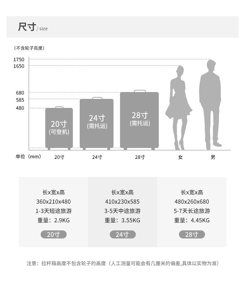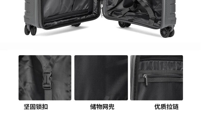새로운 가방 비즈니스 트롤리 케이스 20inch 대용량 PP 케이스 세관 잠금 범용 휠 가방 제조 업체 도매