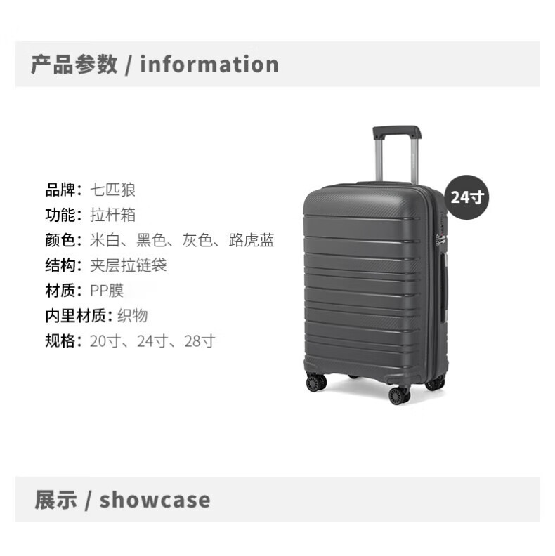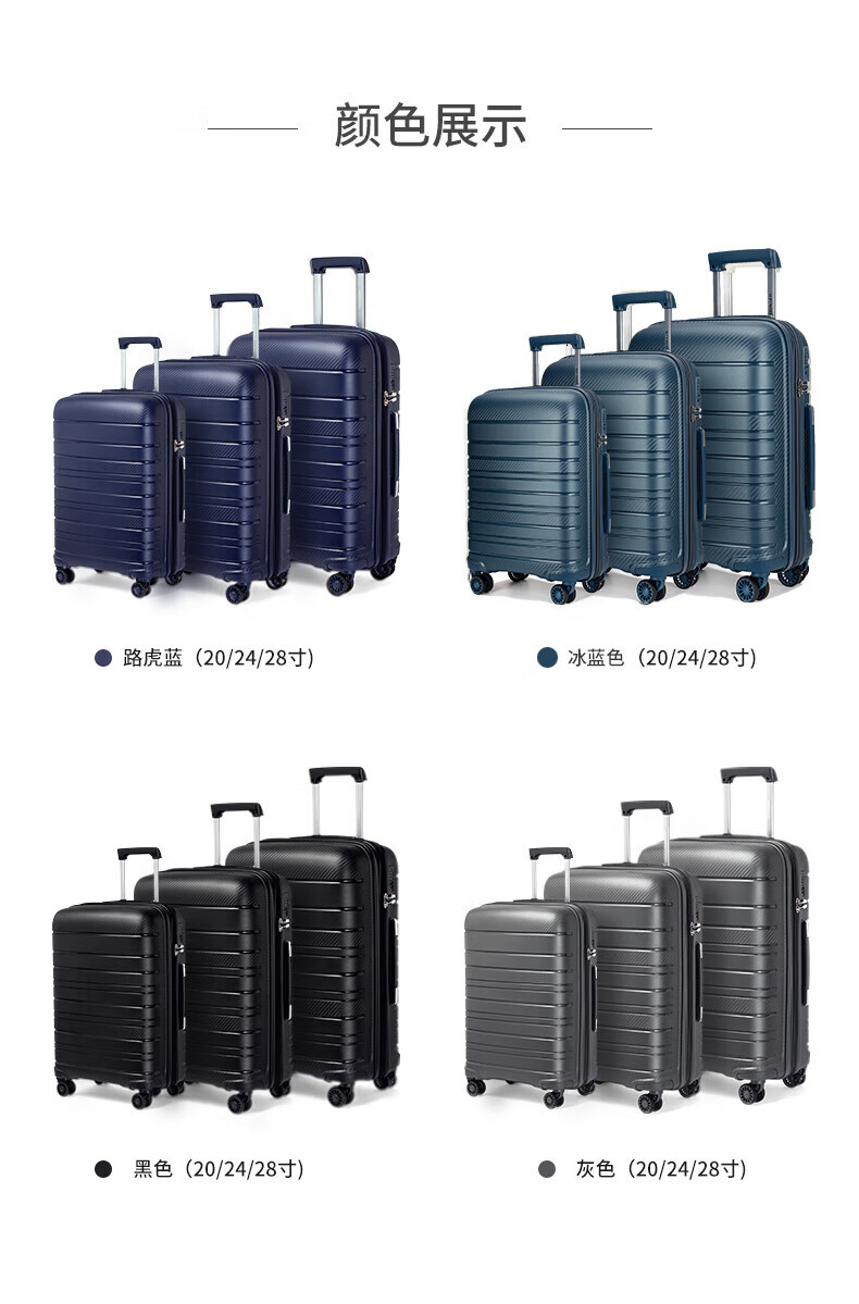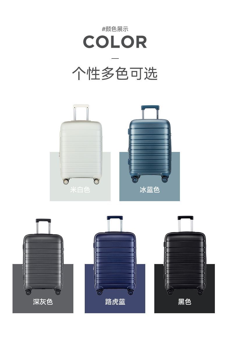 새로운 가방 비즈니스 트롤리 케이스 20inch 대용량 PP 케이스 세관 잠금 범용 휠 가방 제조 업체 도매스토어 가기