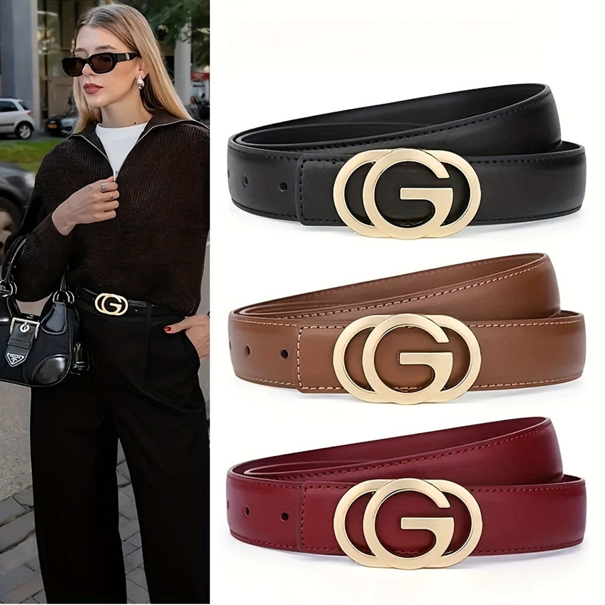 크로스보더 여성용 벨트, 천연 가죽, 다용도 장식 벨트, 유럽 및 미국 스타일, 블랙, 비즈니스, 심플, 패셔너블, OL 스타일스토어 가기