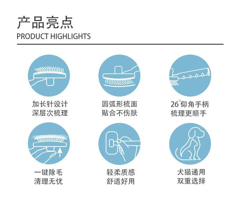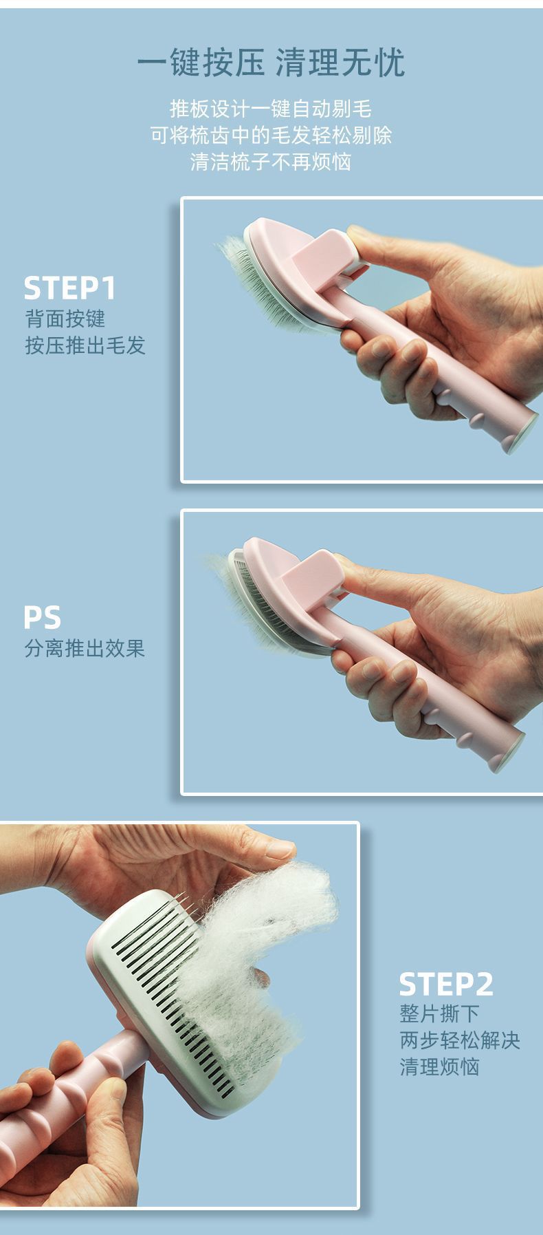 Jinpaizi 자체 청소 빗 애완 동물 빗 개 용품 제모 및 제모 미용 고양이 매듭 빗 원 클릭 제모스토어 가기