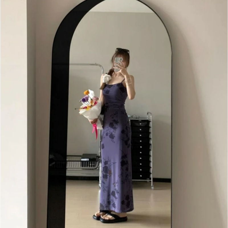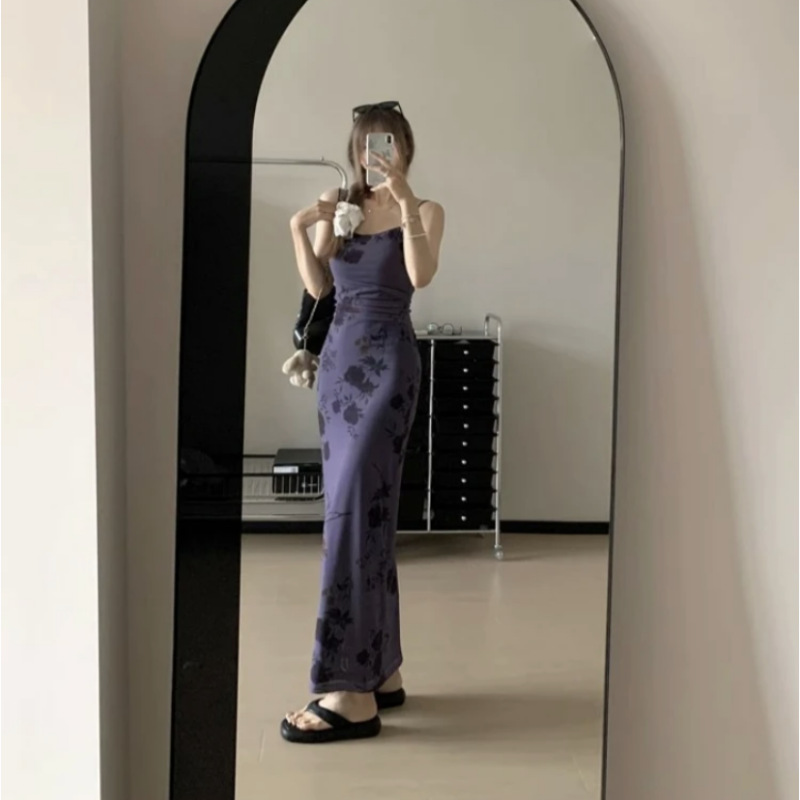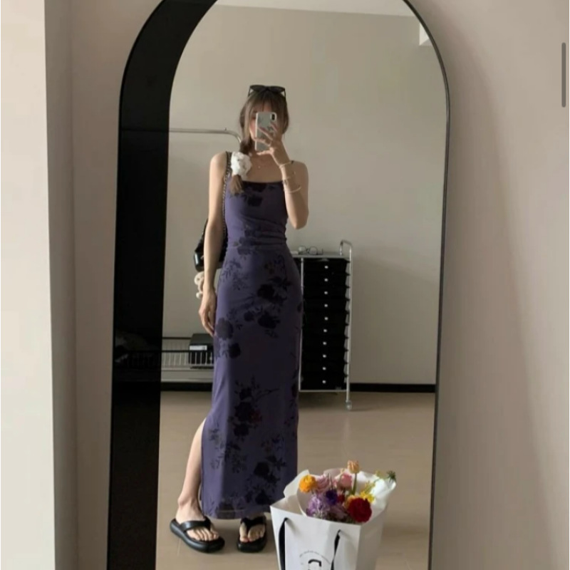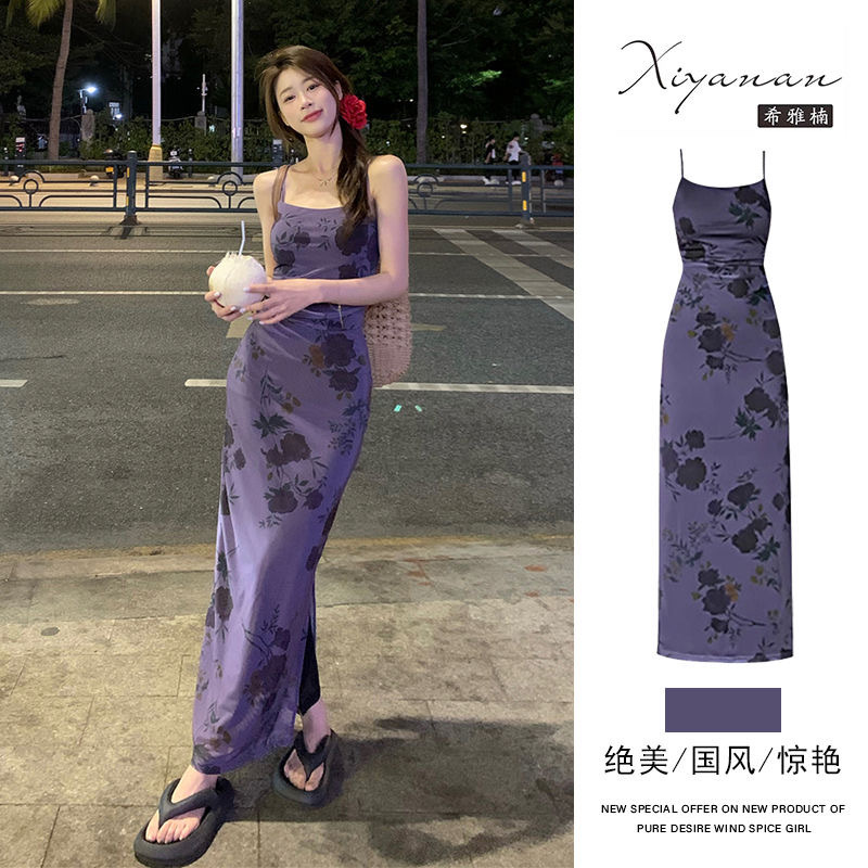 【라이트닝 스토어 인기상품】신중국풍 롱 원피스 신중국풍 멜빵 원피스 여성 프렌치 스타일 슬림핏스토어 가기
